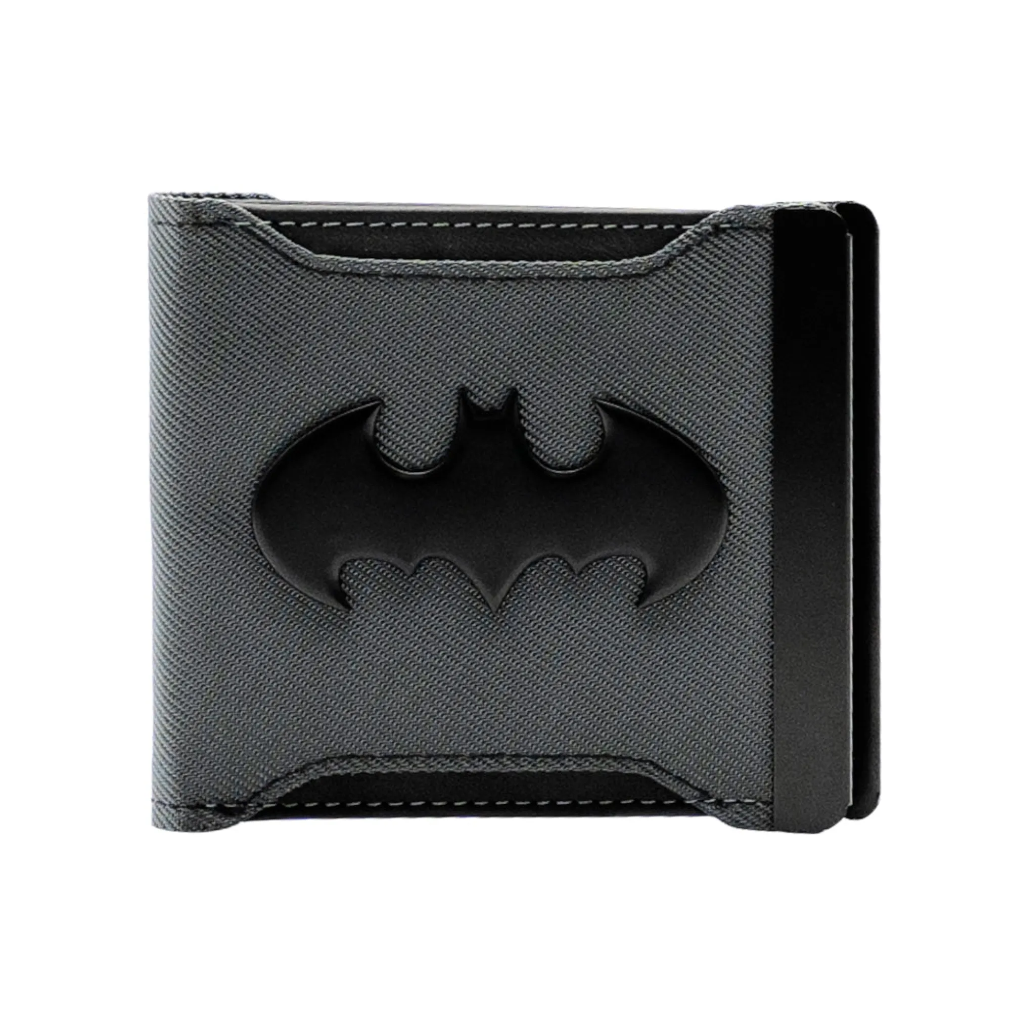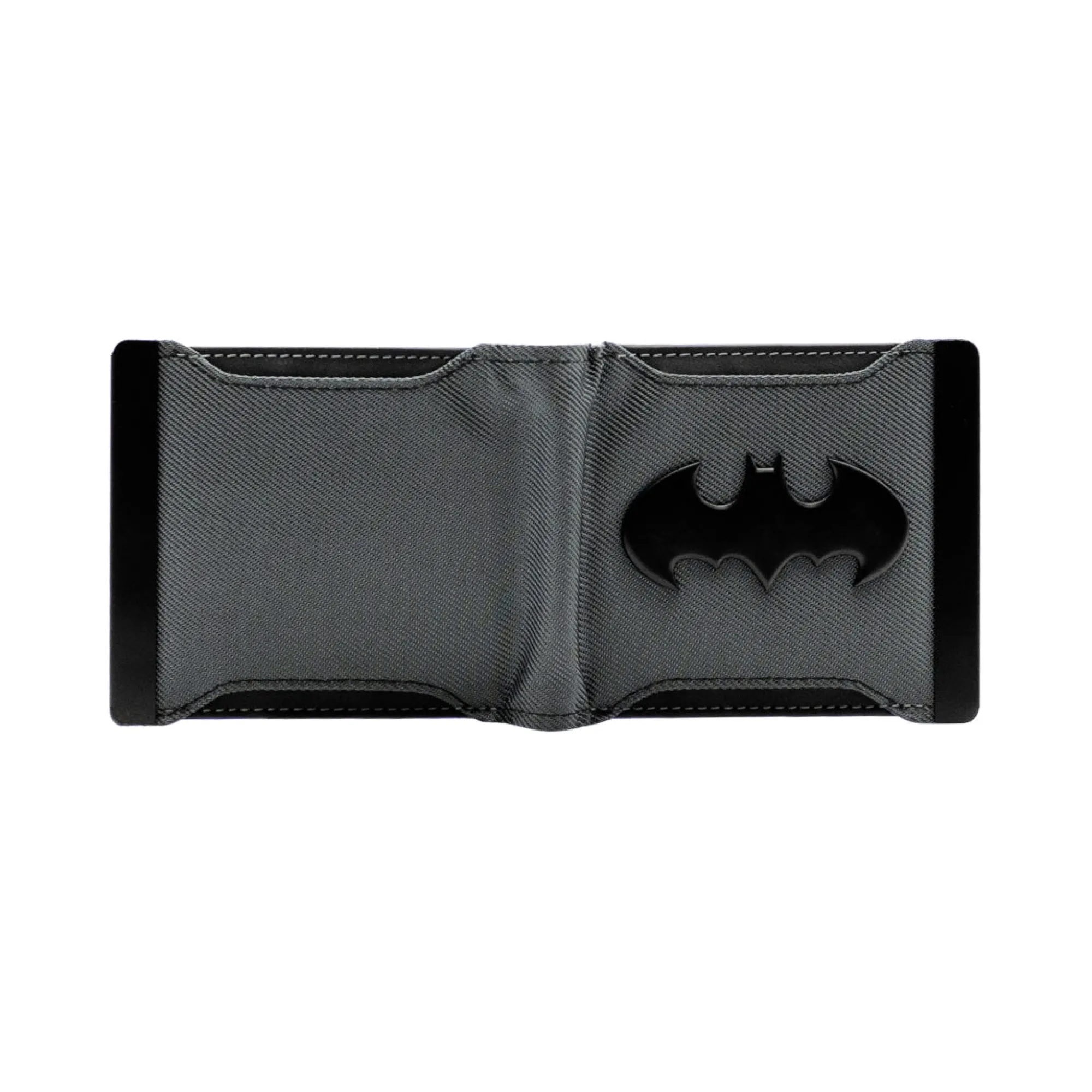 - Praktischer Geldbeutel mit schwarzem Batman-Design und metallenem Logo