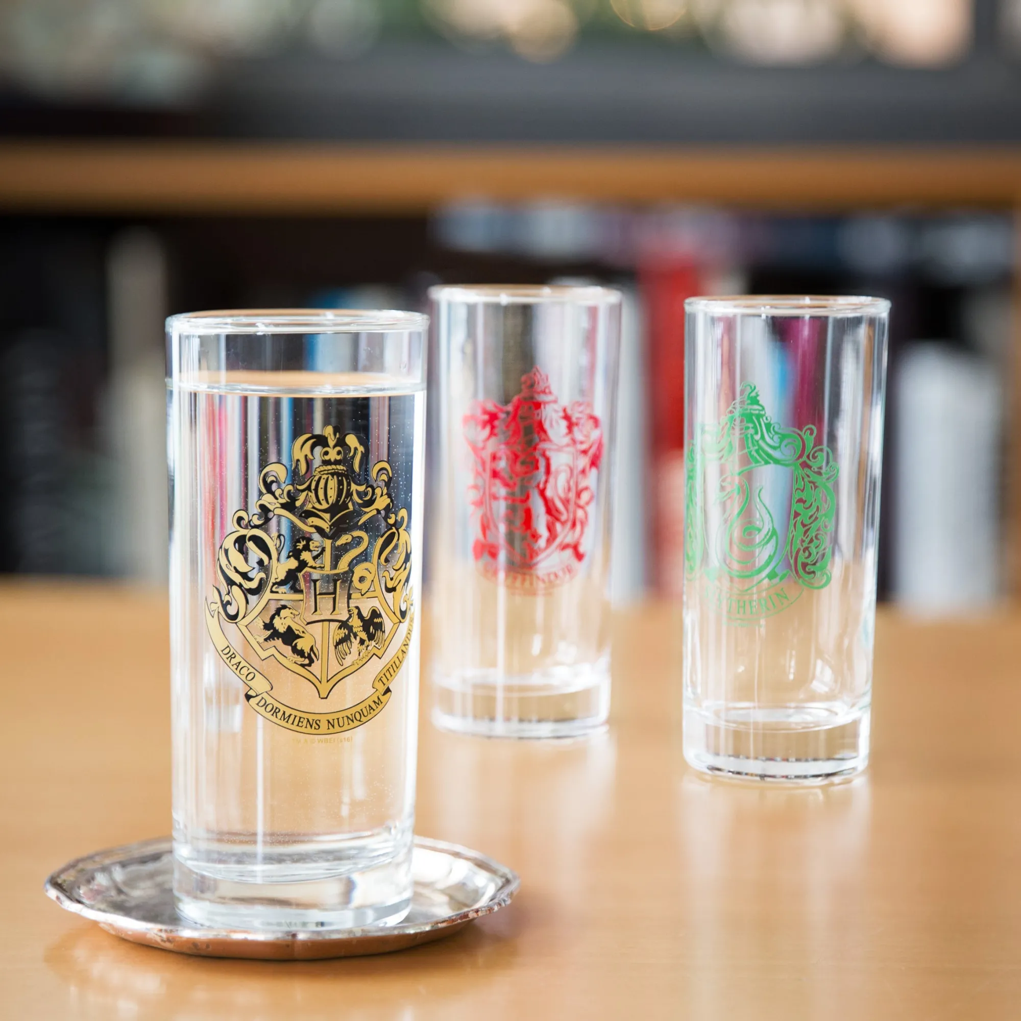 Das Harry Potter Gläser-Set gehört natürlich zur Grundausstattung eines jeden Absolventen der bekannten Zauberschule Hogwarts. Auf diesen drei bedruckten Trinkgläsern kannst Du die Wappen von Hogwarts und der Häuser Gryffindor und Slytherin in all ihrer Pracht bewundern, während Du ein erfrischendes Getränk schlürfst. Eigentlich sollten die anderen Häuser auch vertreten sein, die Ravenclaws haben aber mal wieder das Fest vor lauter Lernen vergessen und die Hufflepuffs kämpfen immer noch damit, ihre Schnürsenkel gebunden zu bekommen. 😉
