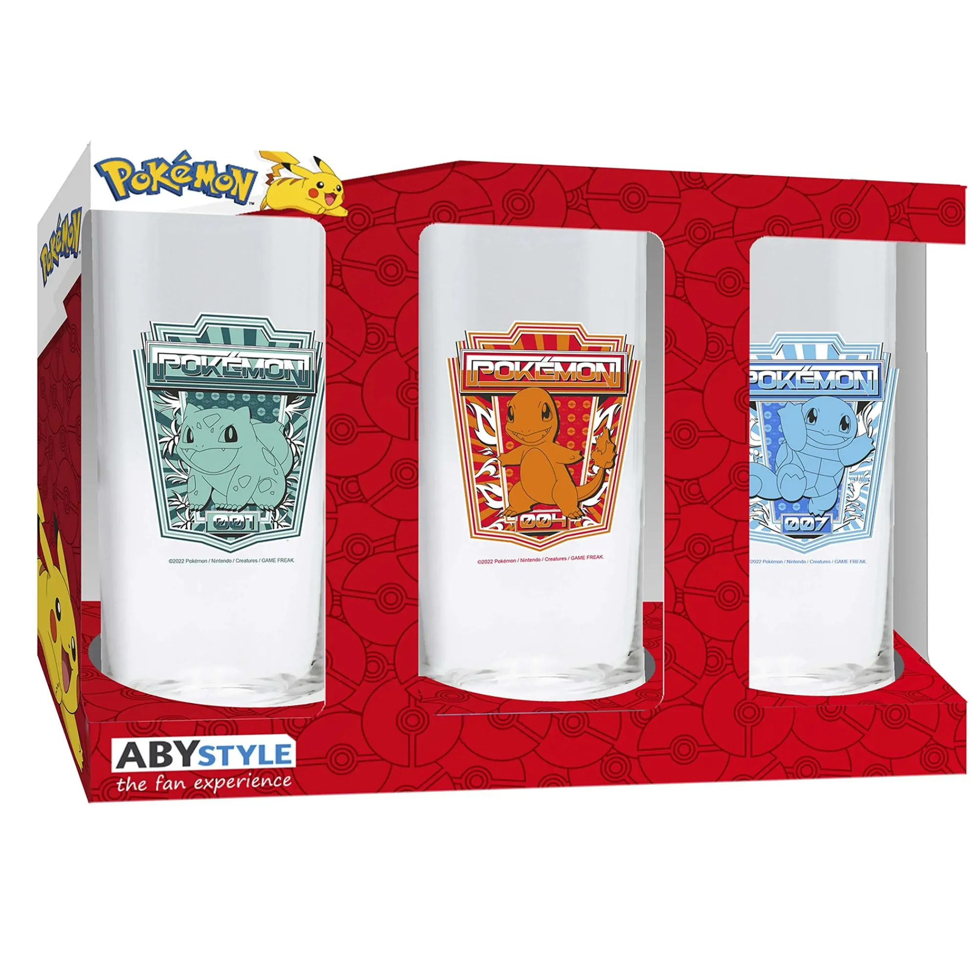 - Die Starter Pokémon der ersten Generation auf einem hochwertigen Gläser Set
