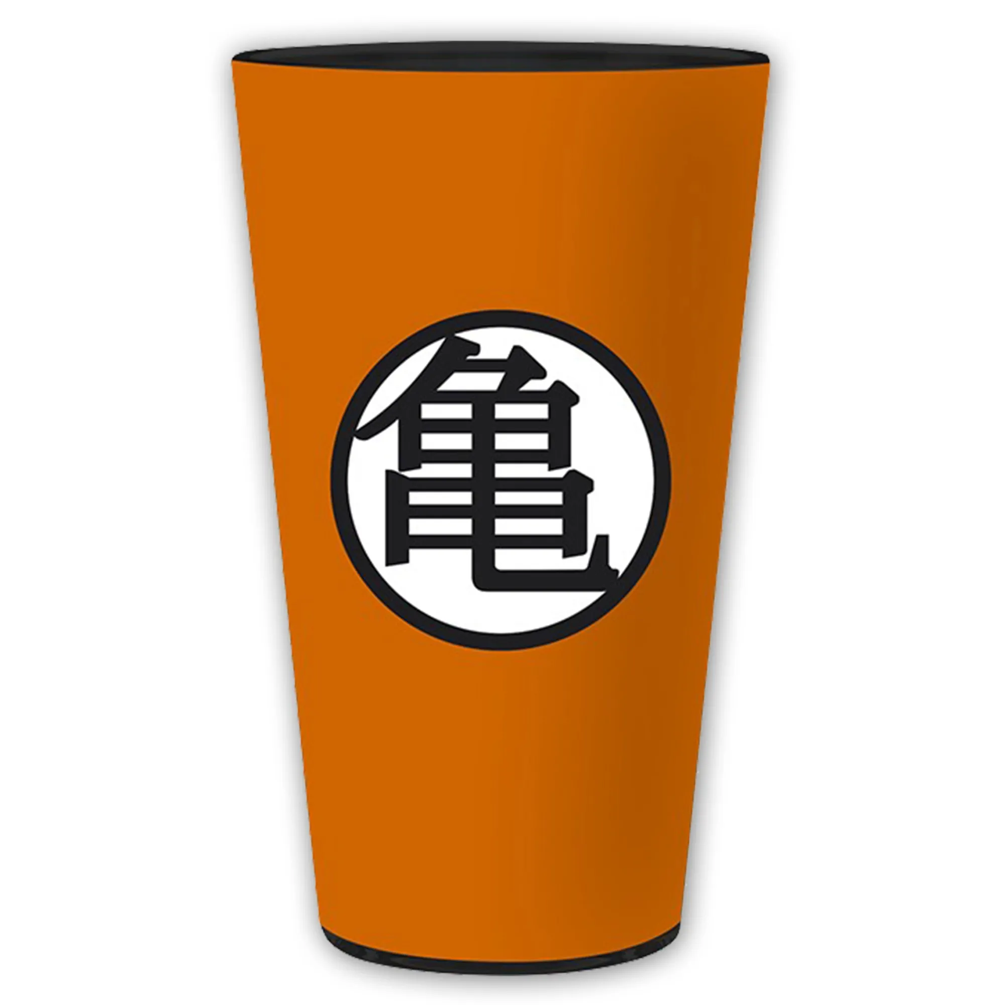 Selbst wenn du vielleicht keinen orangefarbenen Trainingsanzug besitzt, kannst du die beiden Schriftzeichen der Meister in deinen Alltag integrieren. Alles, was du brauchst, ist das Dragon Ball Trinkglas Kame & Kaio. In das große Glas passen bis zu 400 ml Flüssigkeit – genau richtig, wenn man durstig vom Training kommt. Die orangene und schwarze Farbe des Glases sowie die beiden Schriftzeichen erinnern an die Ausbildung unter Roshi und Kaio.