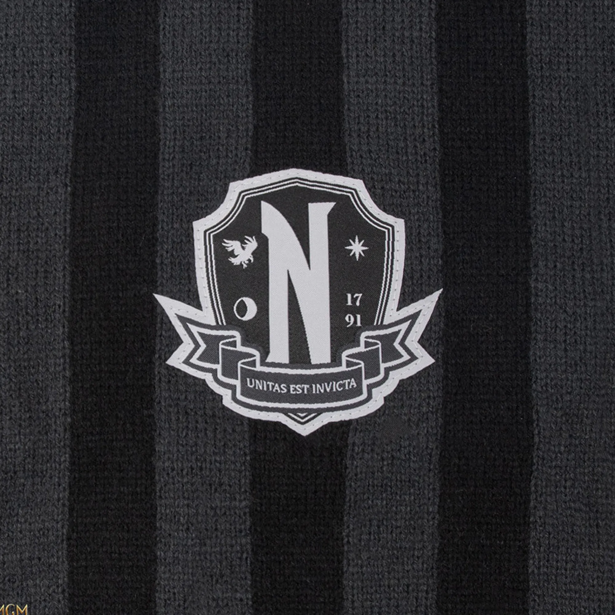 - Überlanger Schal mit dem Logo der Nevermore Academy aus der Serie „Wednesday“