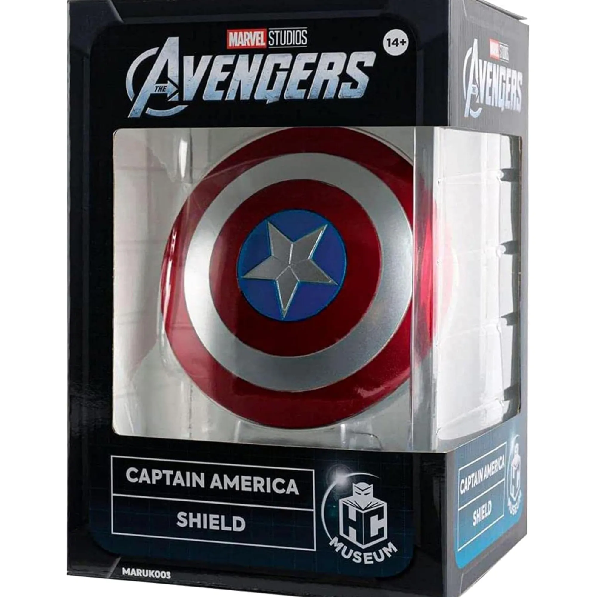 Sein Schild ist das Erkennungszeichen des wohl amerikanischsten Superhelden. Ursprünglich von Howard Stark, dem Vater von Tony Stark (Iron Man), aus so genanntem Vibranium gefertigt, ist es nahezu unzerstörbar und schützt den Helden vor weit mehr als nur Schlägen und Kugeln. Selbst Thors Hammer Mjölnir kann diesem Schild nichts anhaben.