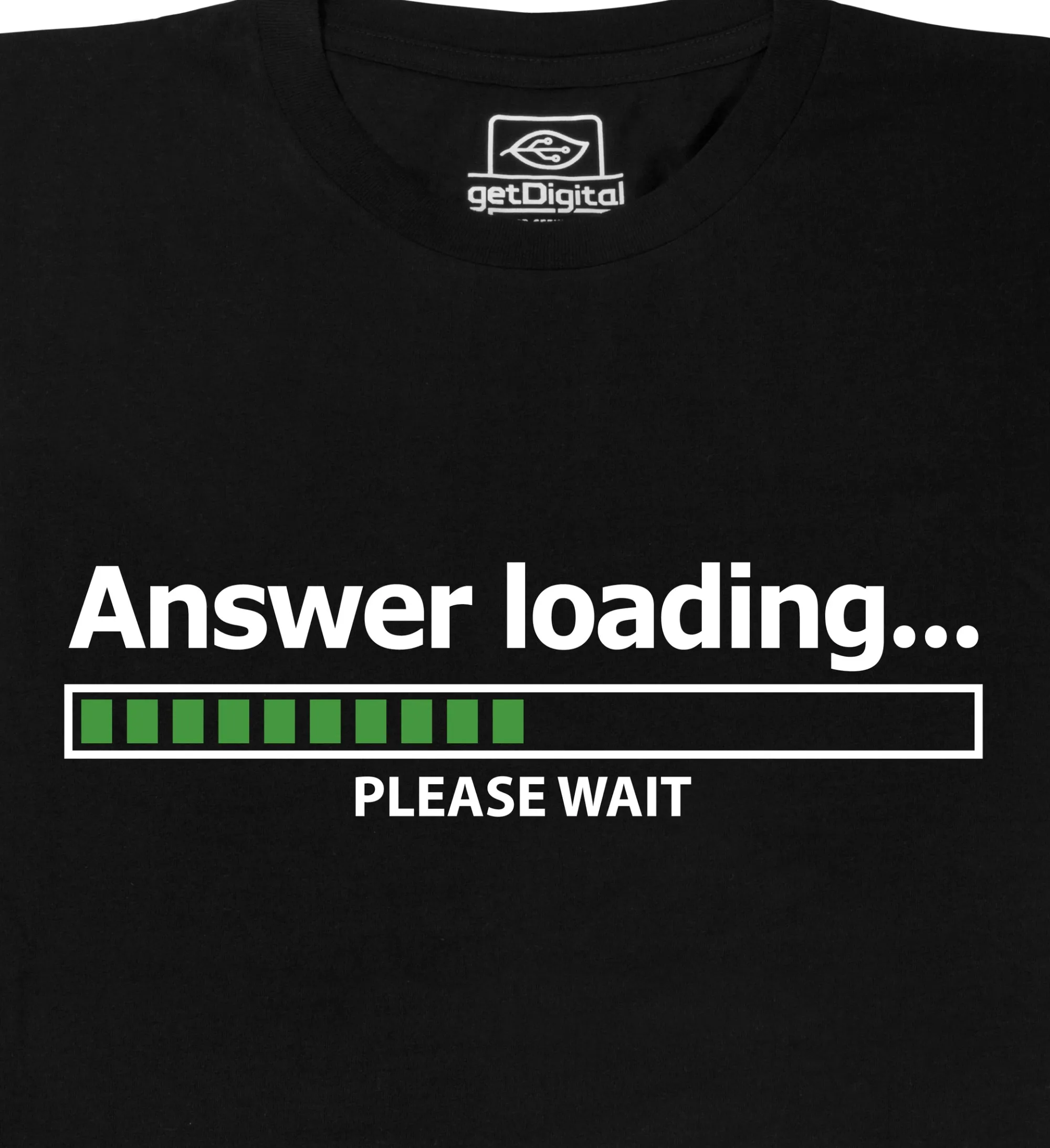 Wenn Du auch immer ein bisschen Zeit brauchst, um auf die Fragen Deiner Mitmenschen zu antworten, dann kannst Du das ab jetzt mit diesem Shirt schon deutlich machen, bevor jemand auch nur das Wort an Dich gerichtet hat.