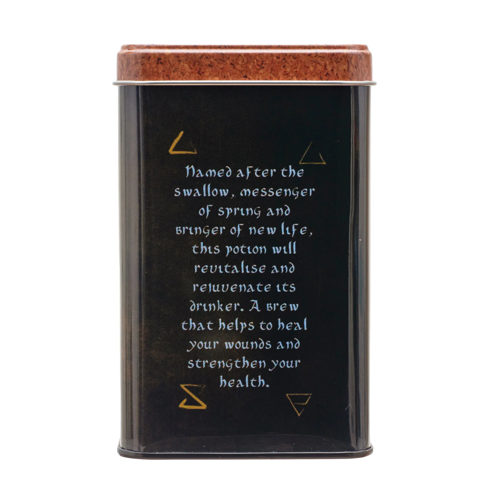 Damit du deinen Vorrat für jede Notsituation griffbereit hast, kannst du ihn in diese stilvolle Fantasy Teedose Swallow Potion füllen. Praktischerweise findest du darauf sogar die Anleitung für die Herstellung des Trankes, falls du sie mal wieder vergessen haben solltest.