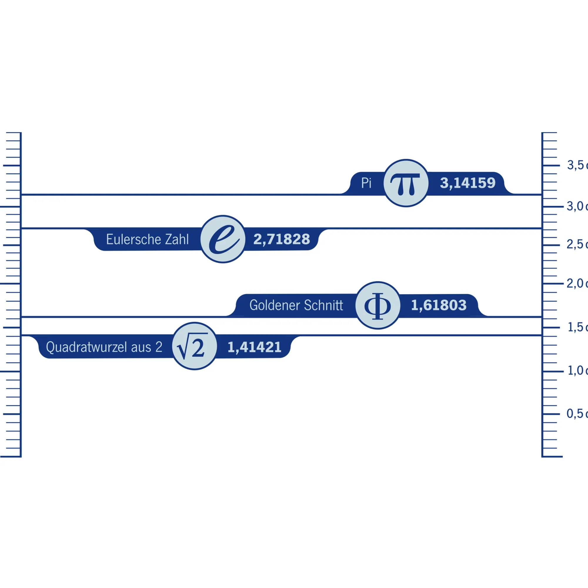 - Vier irrationale Zahlen aus der Mathematik sind ebenfalls markiert