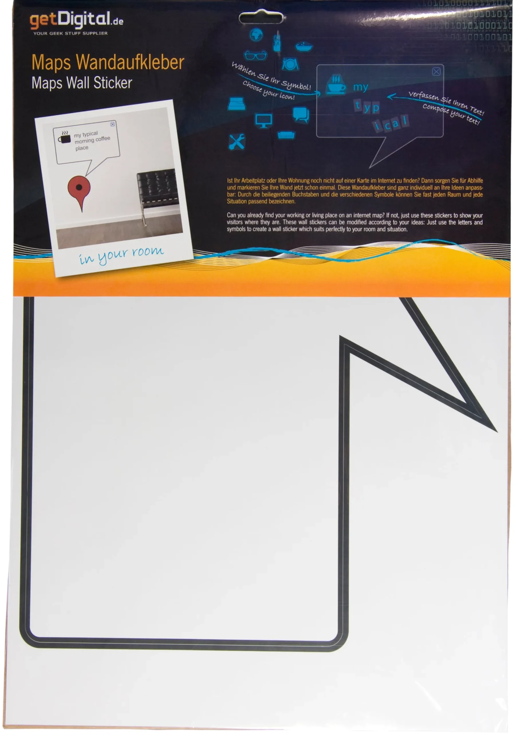Mit diesen Maps Wandaufklebern kannst Du nun selbst Deinen Arbeitsplatz, Deinen Frühstückstisch, Dein Zimmer oder was auch immer Dir einfällt markieren.
