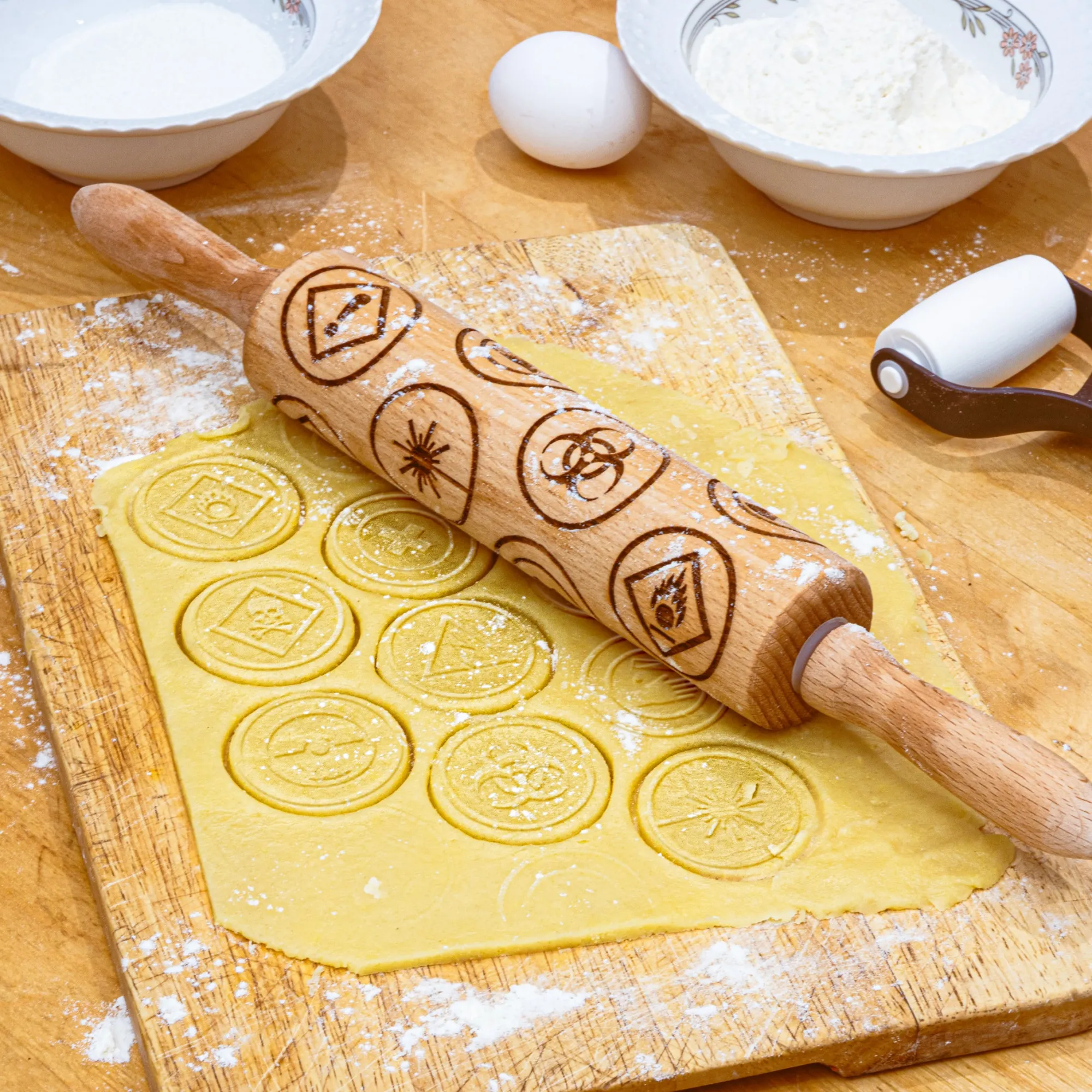 - Hinterlässt Symbole auf dem ausgerollten Teig, die dann ausgestochen werden können