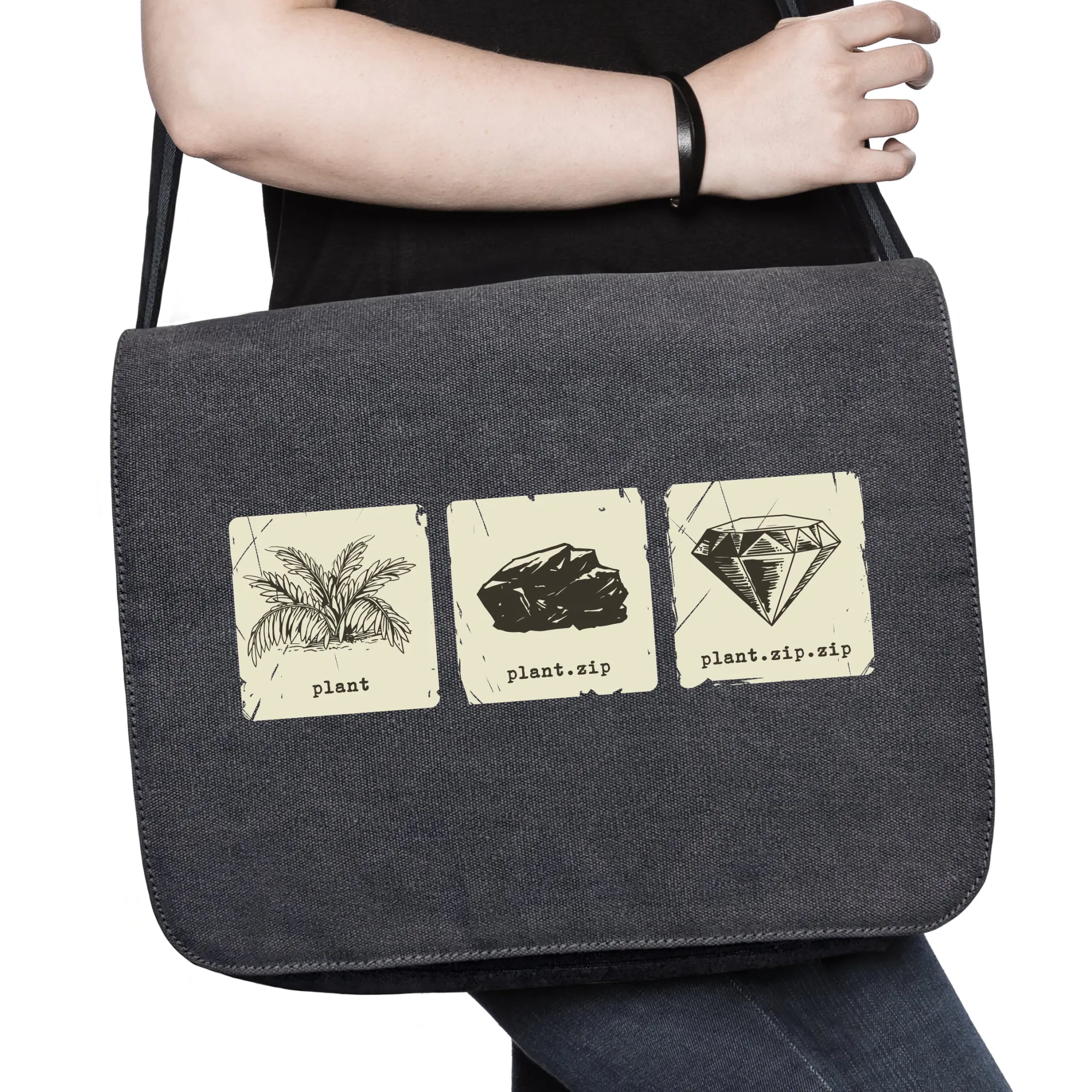 Denn wie das „Plant.zip.zip“-T-Shirt uns in Erinnerung ruft, verwandeln sich (stark vereinfacht ausgedrückt) komprimierte Pflanzen in Kohle und komprimierte Kohle in Diamanten! In Anlehnung an das weit verbreitete .zip-Format für komprimierte Dateien lassen sich Kohle und Diamanten folglich auch als plant.zip bzw. plant.zip.zip bezeichnen. Um reich zu werden, benötigst Du also nur genug Pflanzen, jede Menge Druck und ein bisschen Geduld.