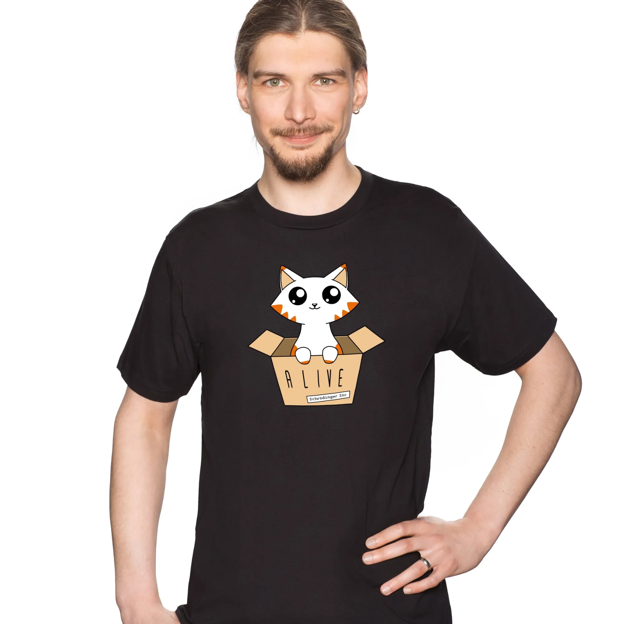 - T-Shirt mit Leuchtmotiv, das Schrödingers Katze zeigt