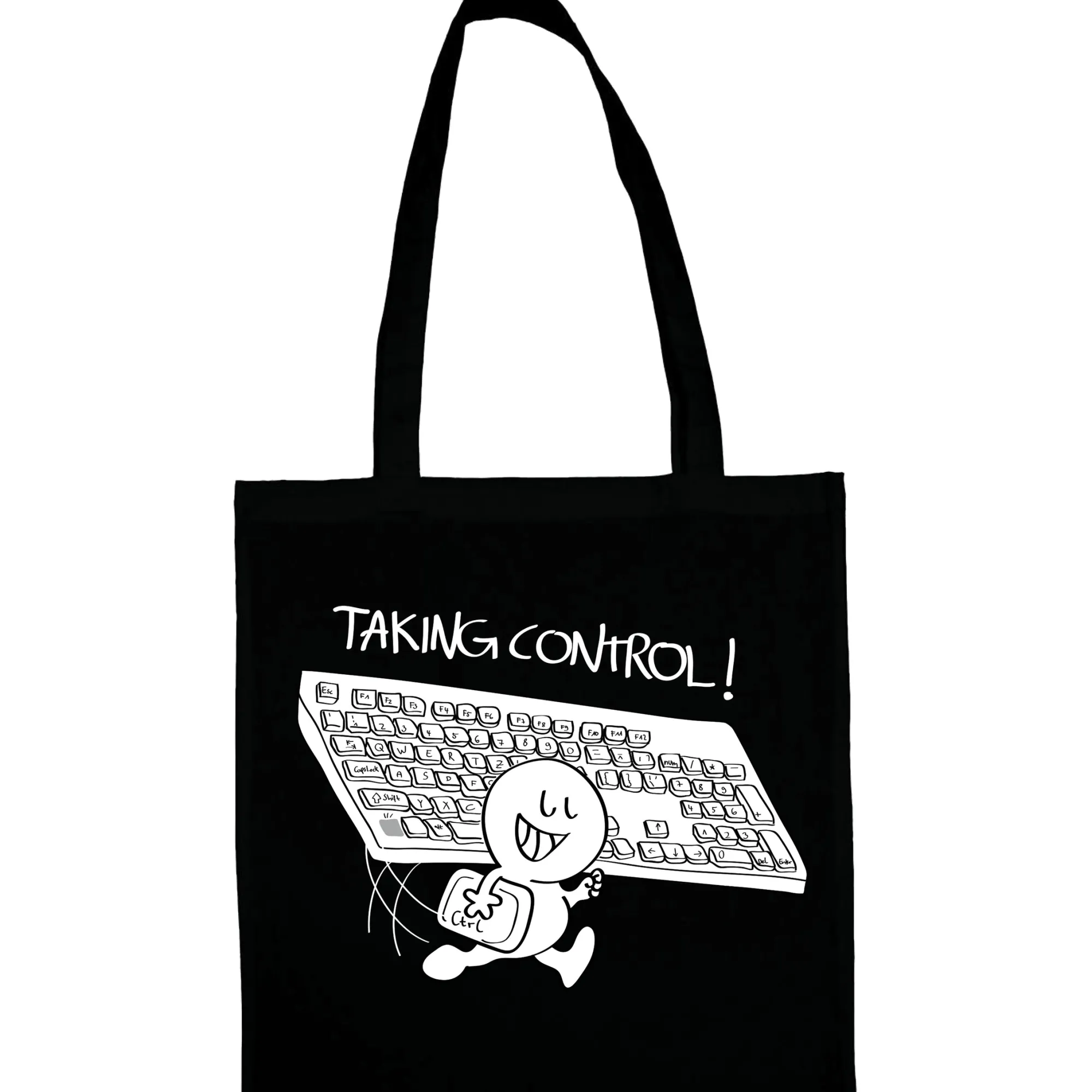 Egal, ob Du Wortwitze magst, auf die Notwendigkeit klarer Formulierungen hinweisen möchtest oder einfach nur den Tastendieb niedlich findest: Der „Taking Control“-Beutel ist genau das Richtige für Dich. Denn er ist nicht nur ein stilvolles Geek-Accessoire, sondern bietet Dir zudem noch eine Menge Stauraum für alle möglichen Dinge.