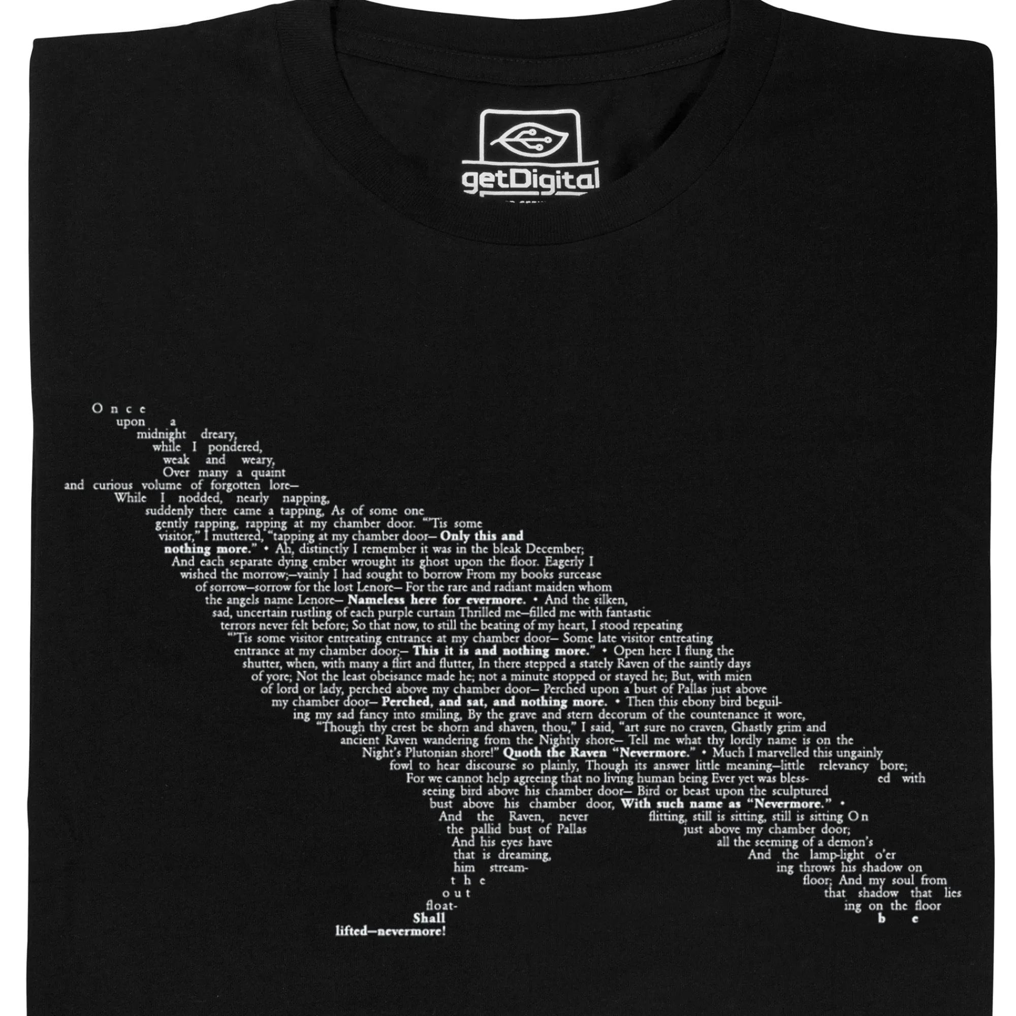 Nichts fängt diese Atmosphäre so gut ein wie Edgar Allan Poes Gedicht “The Raven”. Deswegen bekommst du einen Auszug davon hier als T-Shirt.