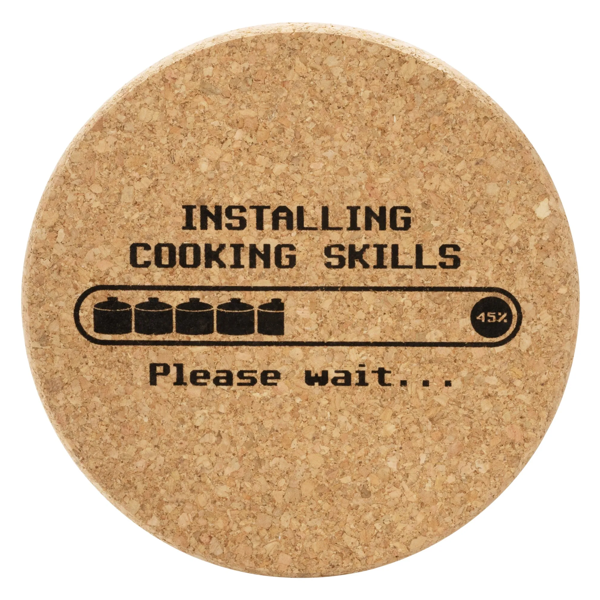 - Verziert mit dem Spruch „Installing Cooking Skills“, der Gäste darauf aufmerksam macht, dass deine Koch-Fähigkeiten noch nicht fertig installiert sind