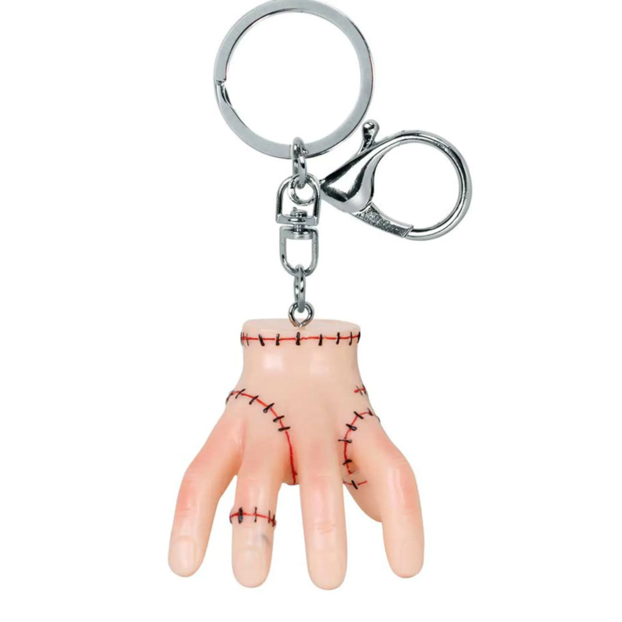 - Schlüsselanhänger in Form des Eiskalten Händchens aus der Netflix Serie „Wednesday“