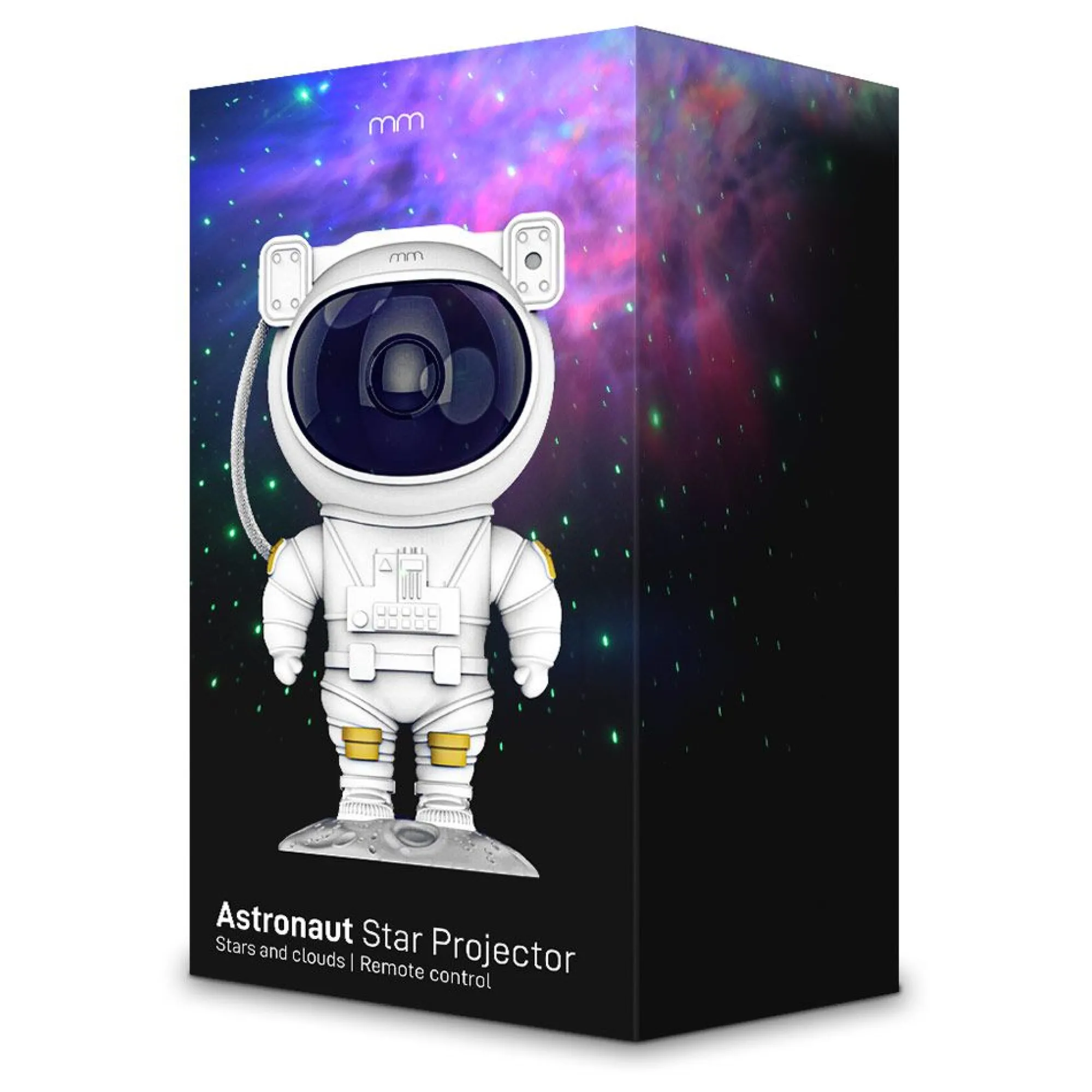 Der Projektor bietet 8 unterschiedliche Nebel-Effekte, die wahlweise mit funkelnden Sternen kombiniert werden können. Per Fernbedienung lässt sich nicht nur die Helligkeit regulieren, sondern auch der Timer aktivieren oder der Modus wechseln. Das Gehäuse ist im niedlichen Astronauten-Design gehalten, wobei der Helm als Projektorkopf dient und sich manuell verstellen lässt, um den perfekten Winkel zu finden. Mit seinen kompakten Maßen von 12 x 11,3 x 23 cm und einem Gewicht von unter 500 Gramm findet er auf jedem Nachttisch oder Regal Platz.