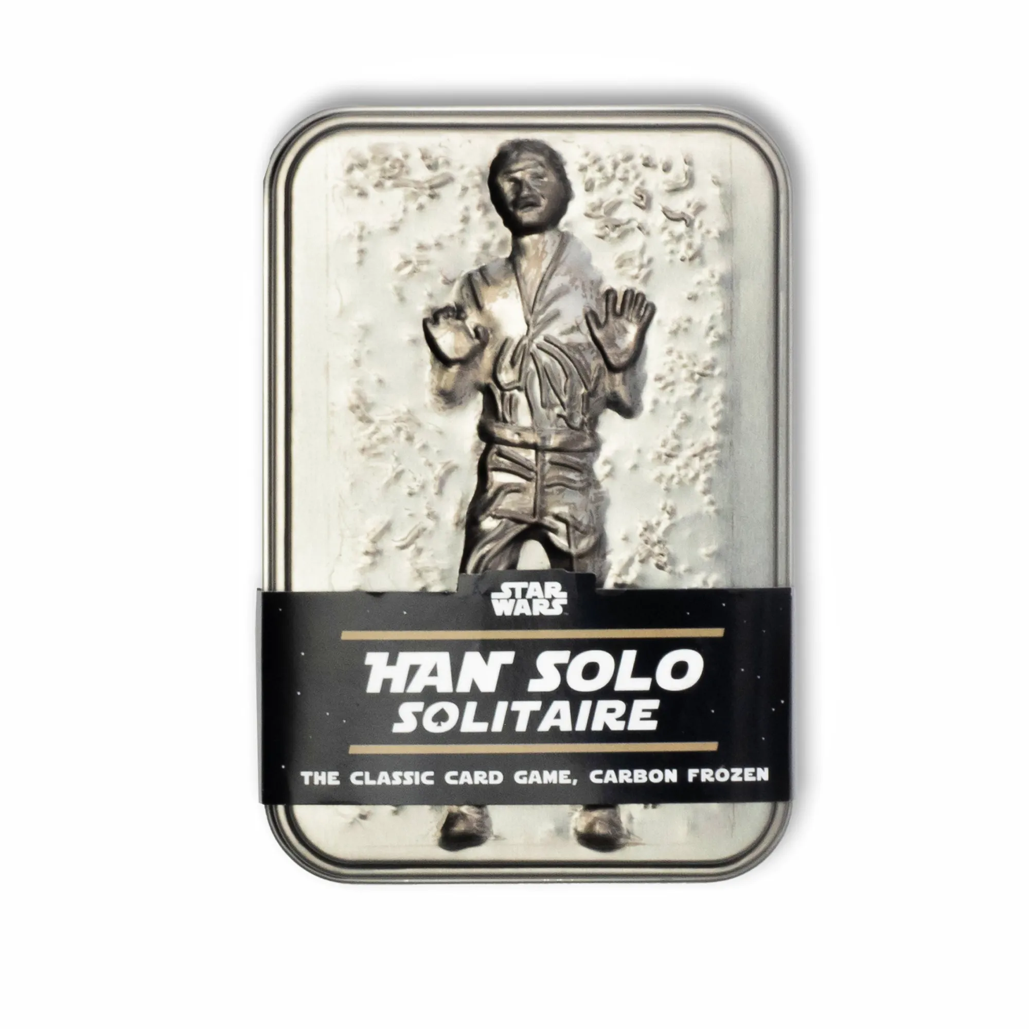 Dafür musst du zum Glück nicht nach Tatooine reisen und dein Leben aufs Spiel setzen. Eine Partie Solotaire (*badumtsss*) mit dem Han Solo in Karbonit Solitaire Kartenspiel reicht völlig aus. Egal, ob du die Mission alleine auf dich nimmst, oder wie Han einen guten Freund an deiner Seite hast, kannst du es in zwanzig Minuten schaffen, den Schmuggler wieder aufzutauen. Doch selbst wenn du alleine spielst, hast du die Unterstützung von Leia, Chewbacca und anderen Rebellen, die auf den Karten des Spiels abgebildet sind. Als zusätzlichen Bonus kannst du bei diesem ganz besonderen Kartenspiel sogar vom Padawan zum fertig ausgebildeten Jedi aufsteigen.