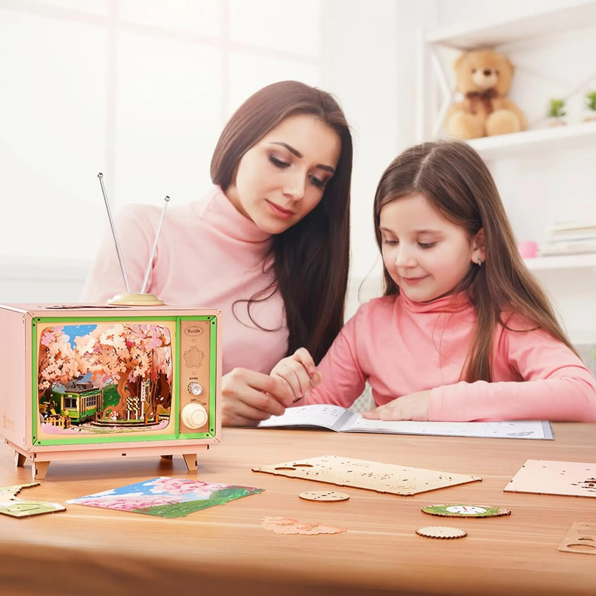 Tauche ein in eine zauberhafte Miniaturwelt der Kirschblütenzeit! Der Sakura Traumtour Retro TV Spieluhr Holzbausatz bringt nostalgischen Charme und moderne Technik in einem liebevoll gestalteten DIY-Projekt zusammen. Inspiriert vom Retro-Fernseher-Design entfaltet sich im Inneren eine dynamische Szenerie mit einer fahrenden Straßenbahn unter blühenden Kirschbäumen – begleitet von Musik, Licht und Bewegung.