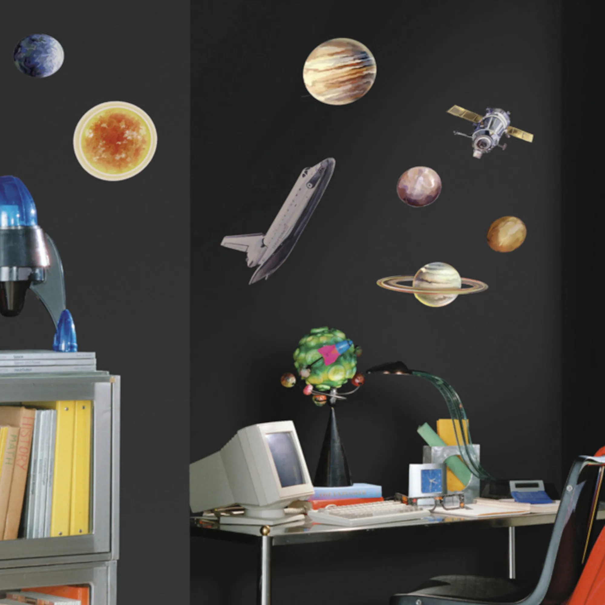 Das bedeutet jedoch nicht, dass du dir das Weltall nicht sogar nach Hause holen kannst. Mit den Raumfahrt Wandaufklebern kannst du jedes Zimmer in dein eigenes Universum verwandeln. Die 24 Sticker zaubern dir Planeten, Raumfähren, Satelliten und sogar ganze Galaxien an deine Wand, Türen, Möbel oder andere glatte Oberflächen.