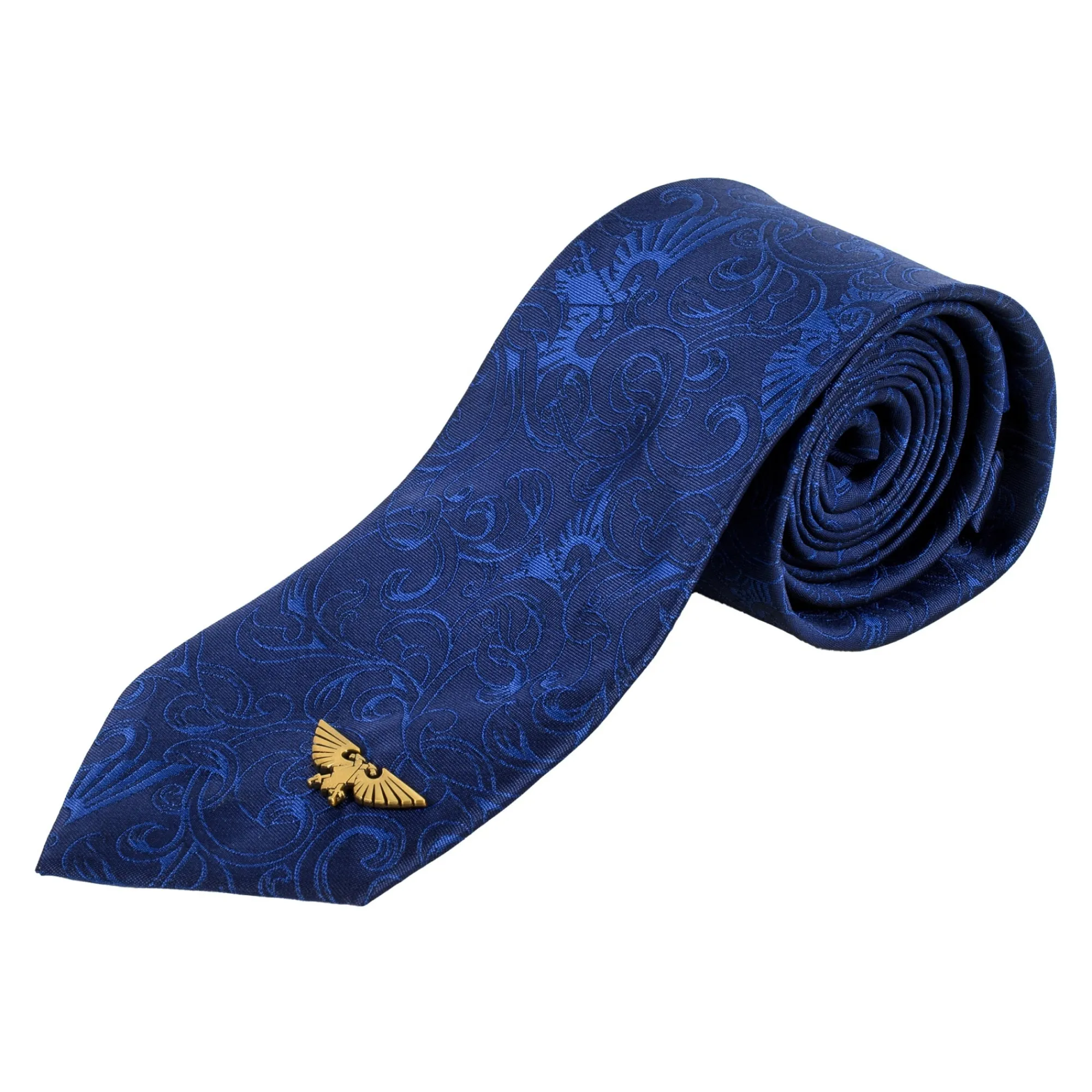 Die Krawatte ist in klassischem Space-Marine-Blau gehalten, mit detailreichen Aquila-Ornamenten, die in das gediegene und zeitlose Design eingearbeitet sind. Zusätzlich kommt die Krawatte mit einer goldenen Aquila Anstecknadel, um jeden Zweifel an deiner Loyalität auf den ersten Blick zu beseitigen.