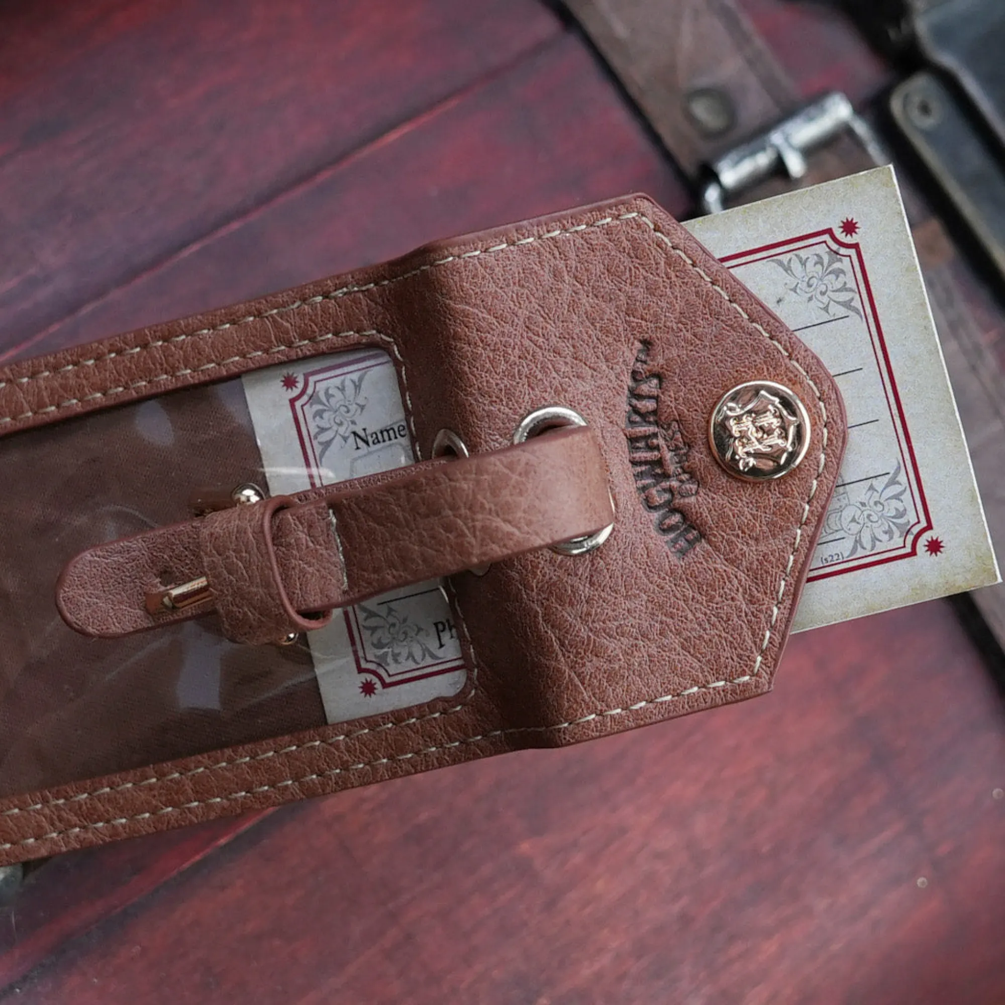 - Gepäckanhänger in Lederoptik mit der Aufschrift des Hogwarts-Express aus der Welt von „Harry Potter“