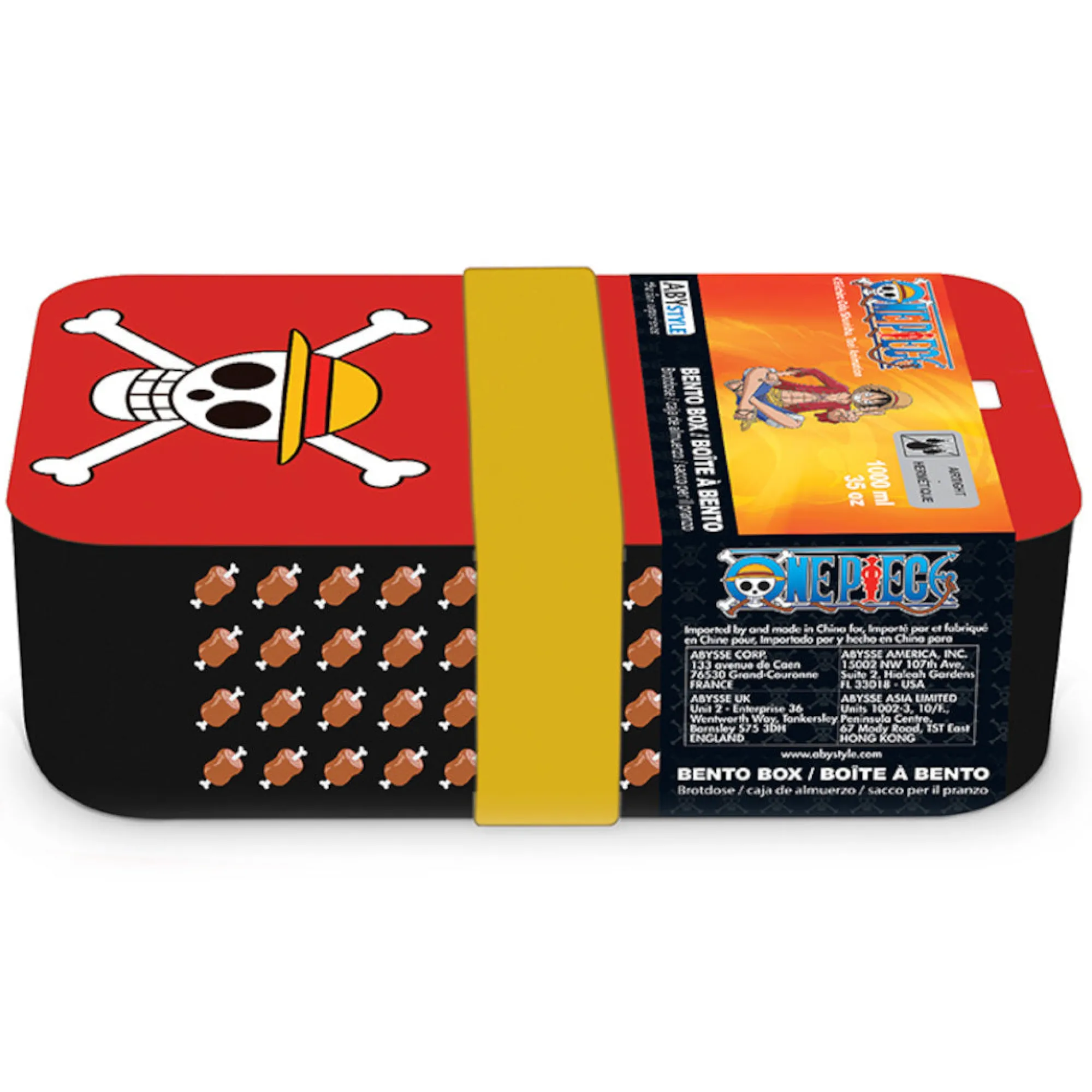 - Rot-schwarze Bento Box mit Symbolen aus dem Anime “One Piece”