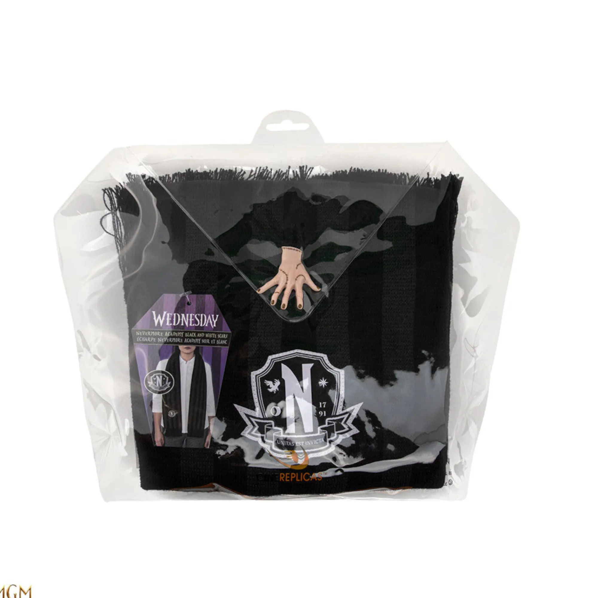 - Überlanger Schal mit dem Logo der Nevermore Academy aus der Serie „Wednesday“