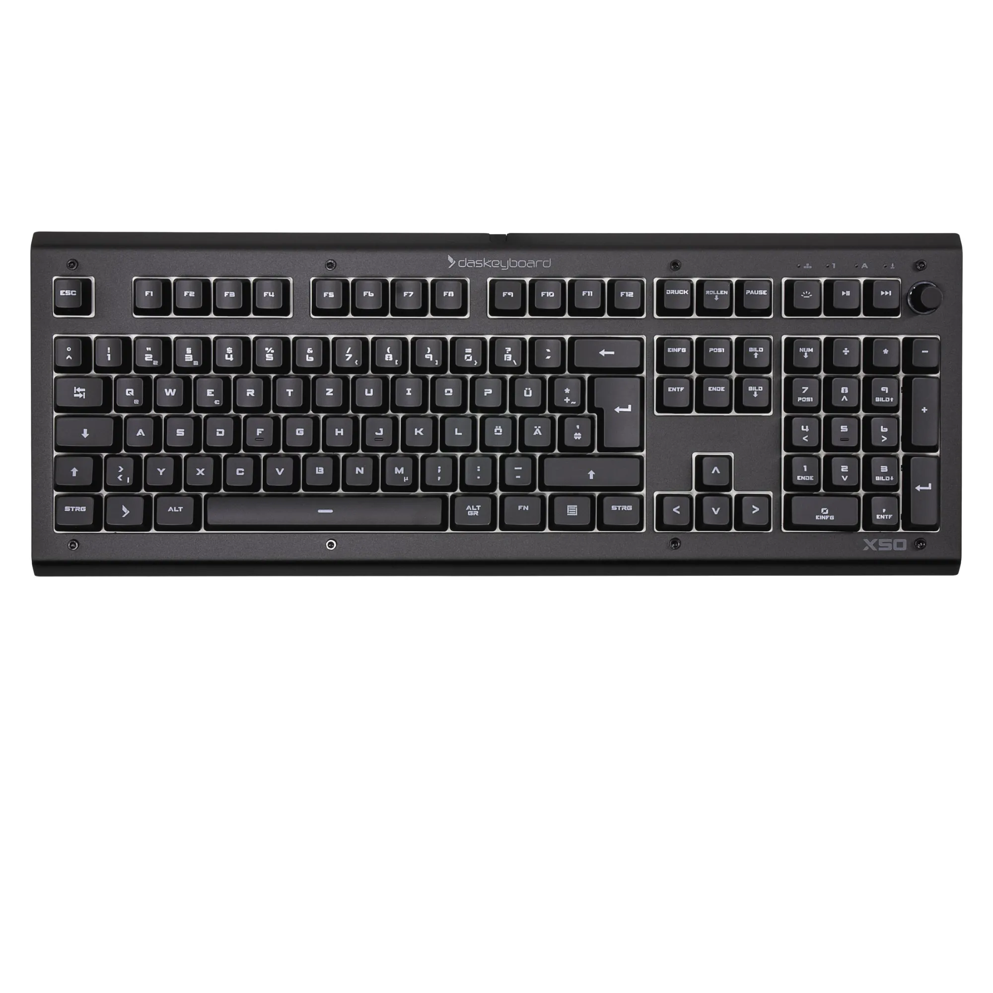 Wenn es darum geht, eine Tastatur auszusuchen, die höchste Ansprüche beim Tippen, Coden und Gaming zugleich erfüllt, gelangt man früher oder später bei einer mechanischen Tastatur an. Genauer gesagt: bei der Kultmarke Das Keyboard. Das absolute Nonplusultra aus dem DK-Arsenal ist die Das Keyboard X50Q – eine mechanische Tastatur der Spitzenklasse mit RGB-Beleuchtung, die sich komplett programmieren lässt. Der Traum eines jeden Nerds!