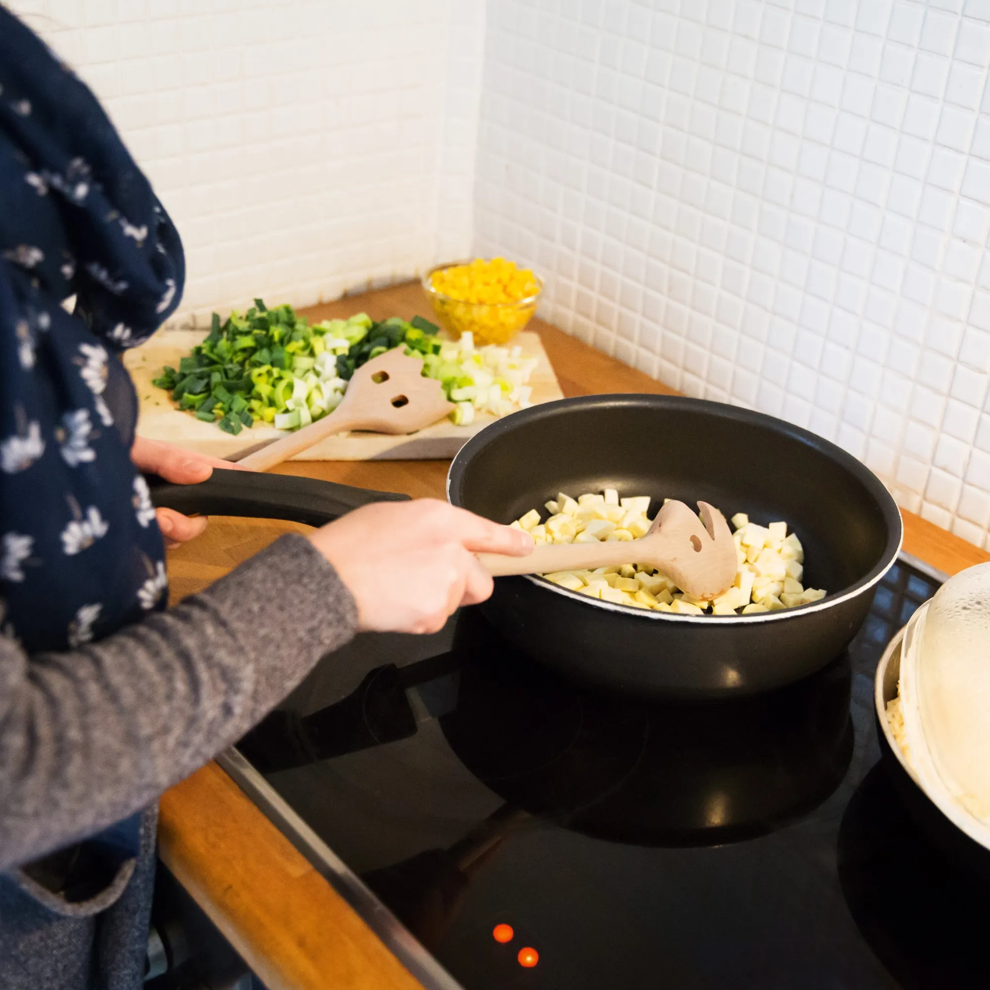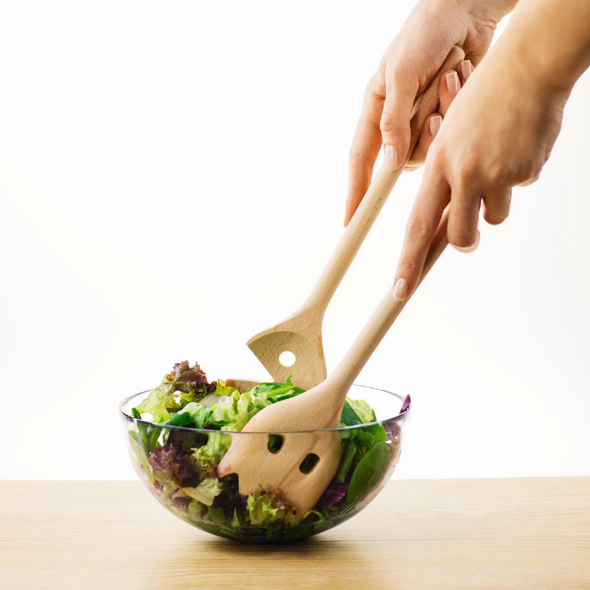 - Kochbesteck bestehend aus zwei Löffeln aus Buchenholz