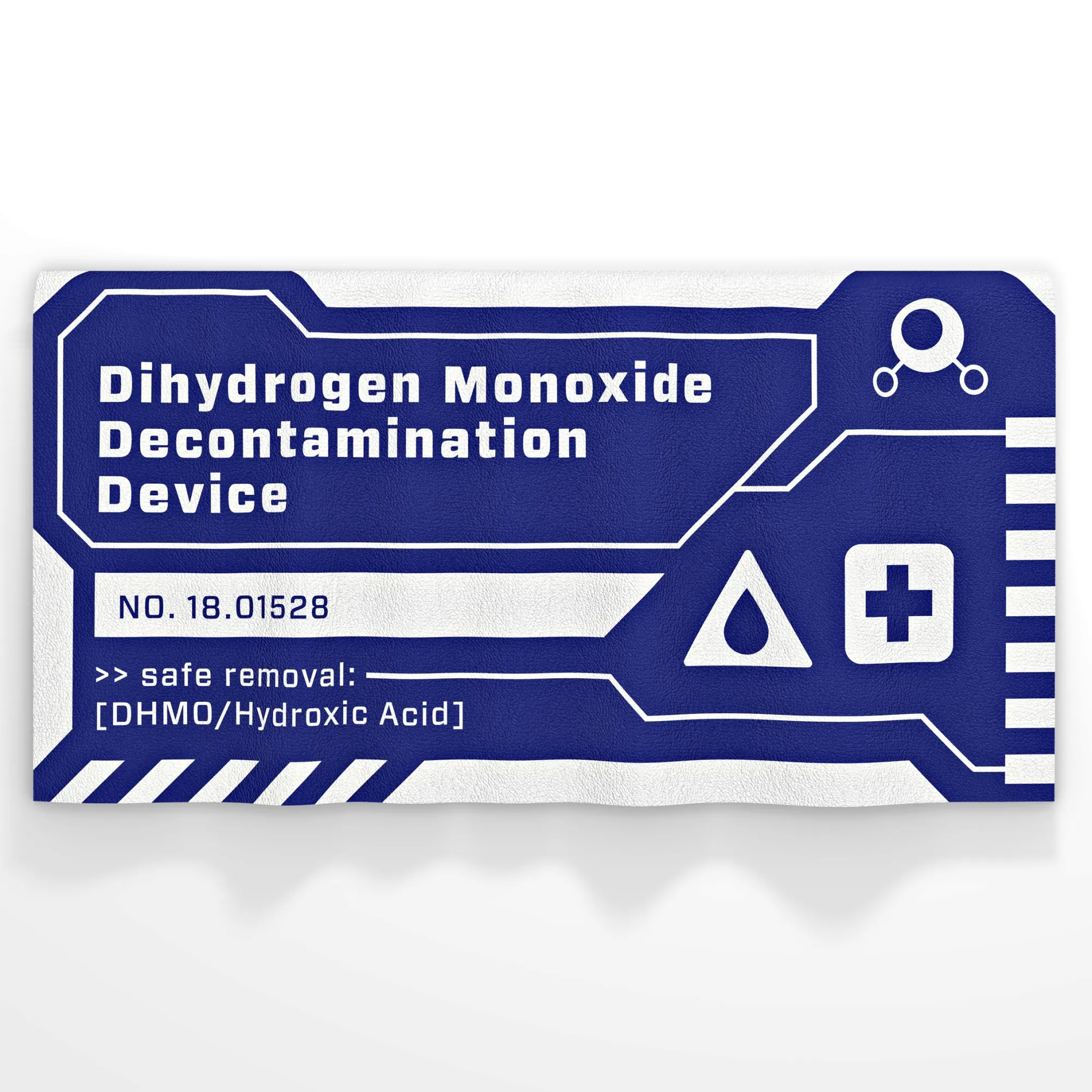 Deshalb haben wir mit dem DHMO-Handtuch ein tragbares (und flauschiges) Werkzeug entwickelt, das Dir dabei hilft, bei einem DHMO-Unfall das Schlimmste abzuwenden: Sollte Deine Haut mit DHMO benetzt sein, musst Du einfach nur mit dem Tuch über die Haut reiben, um die Chemikalie zu binden! Du kannst damit sogar Deinen Fußboden retten, falls er ebenfalls verschmutzt wurde!