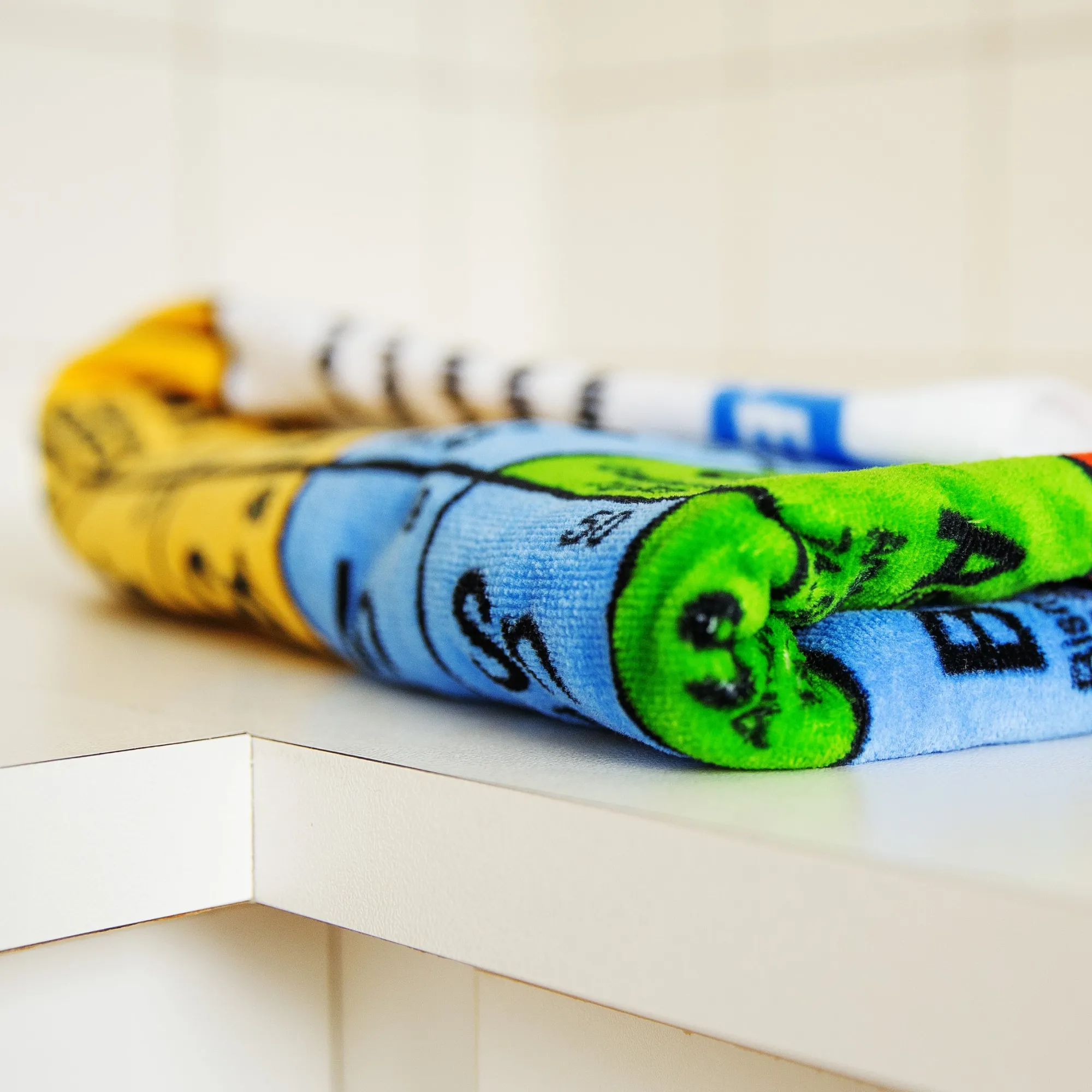 Da wir ja in jeder Lebenslage mit Chemie zu tun haben, kann es von Vorteil sein, die Elemente aus dem Effeff zu kennen. Egal, ob Du bereits im Kindesalter die Elemente von Wasserstoff bis Lawrencium rezitieren konntest, oder erst später zu dieser Wissenschaft gefunden hast: Das Badehandtuch Periodensystem bietet Dir die Möglichkeit, am Strand, im Badezimmer und beim Besetzen von Liegen stets einen flauschigen und farbenfrohen Spickzettel dabei zu haben. Damit der Spaß nicht zu kurz kommt, findest Du neben den klassischen Elementen auch das Überraschungselement Ah! an prominenter Stelle. Fassen wir zusammen: Dieses Handtuch ist das perfekte Accessoire für alle, die in der Chemie in ihrem Element sind… 😉