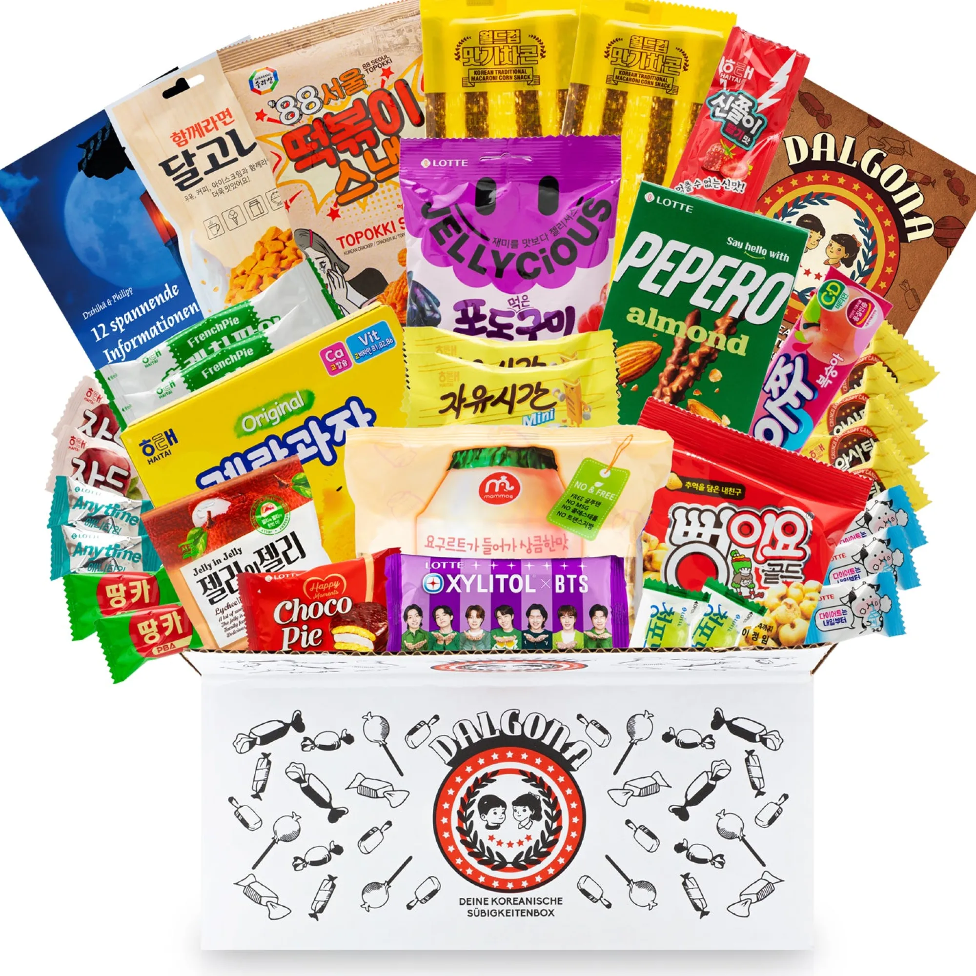 - Überraschungsbox mit mindestens 30 ausgewählten Süßigkeiten aus Korea