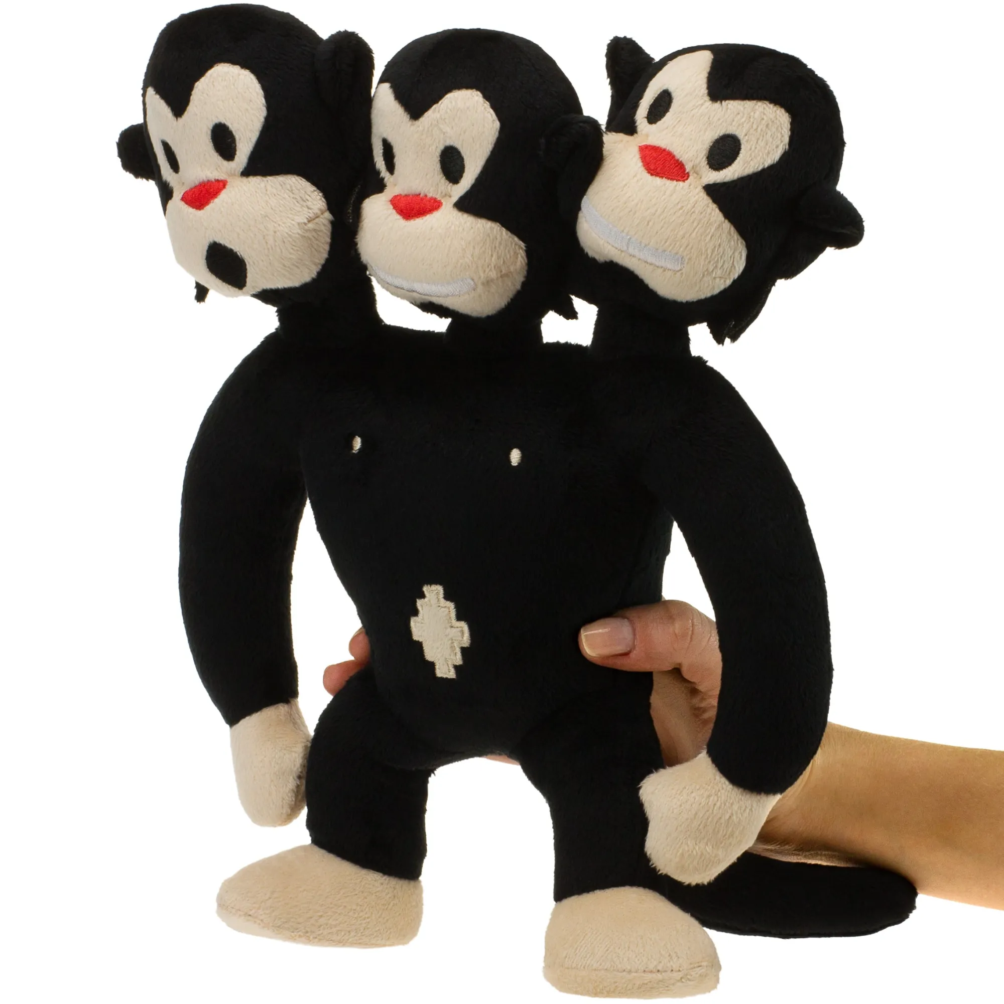 Alle Teile des Dreiköpfigen Affen wie Augen, Nasen, Bauchnabel sind aufgestickt und können so einerseits nicht abfallen, aber z.B. auch nicht verschluckt werden. Damit eignet er sich auch für ältere Kinder ab mindestens 3 Jahren, um sie gleich auf den richtigen Weg eines Lebens als Geek zu führen.