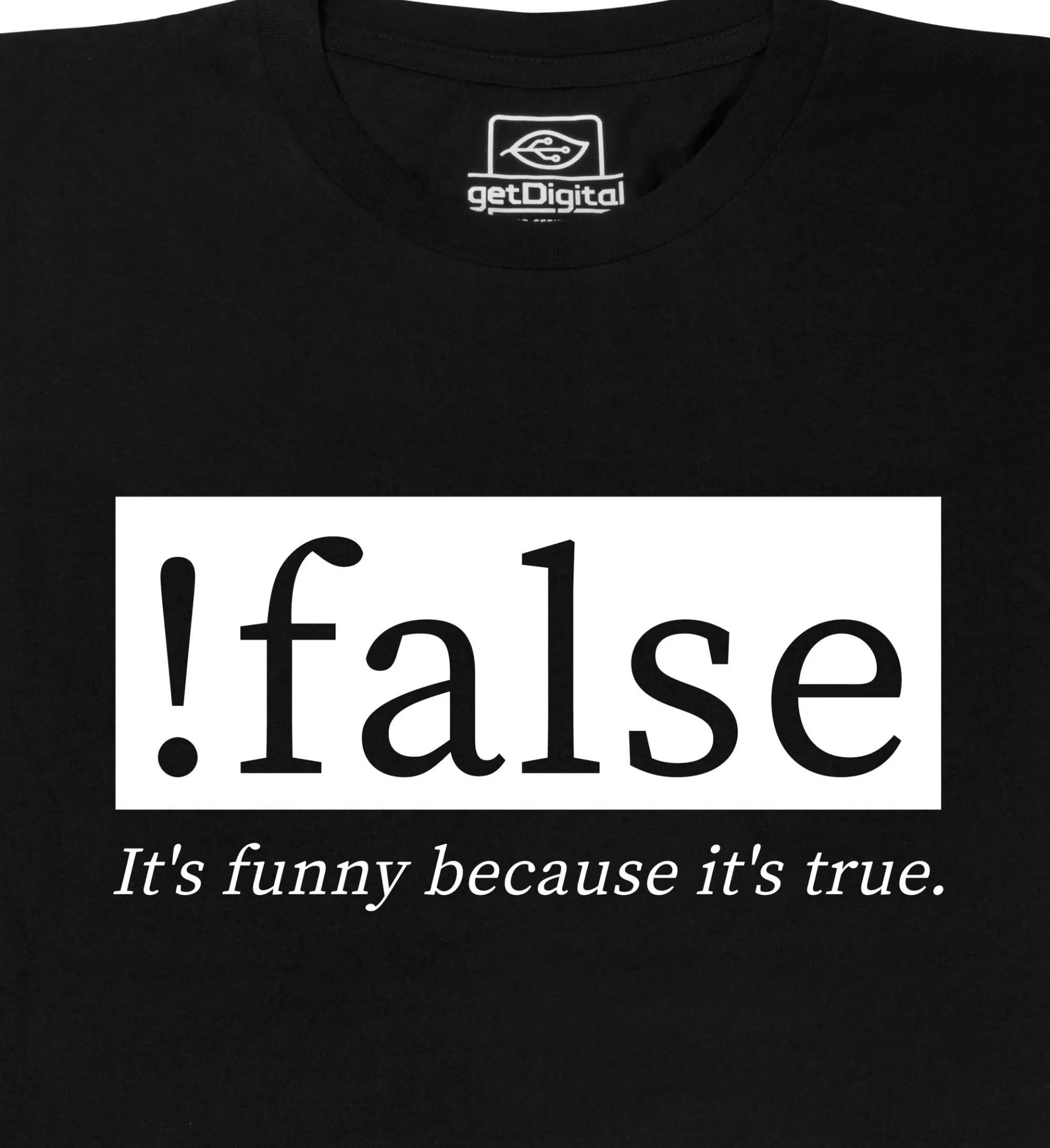 Auf den ersten Blick wirkt dieser Aufdruck einfach nur etwas merkwürdig. Bis man sich klar macht, dass das Ausrufezeichen in vielen Programmiersprachen einen sogenannten Negationsoperator darstellt, der die Bedeutung seines Operanden umkehrt.