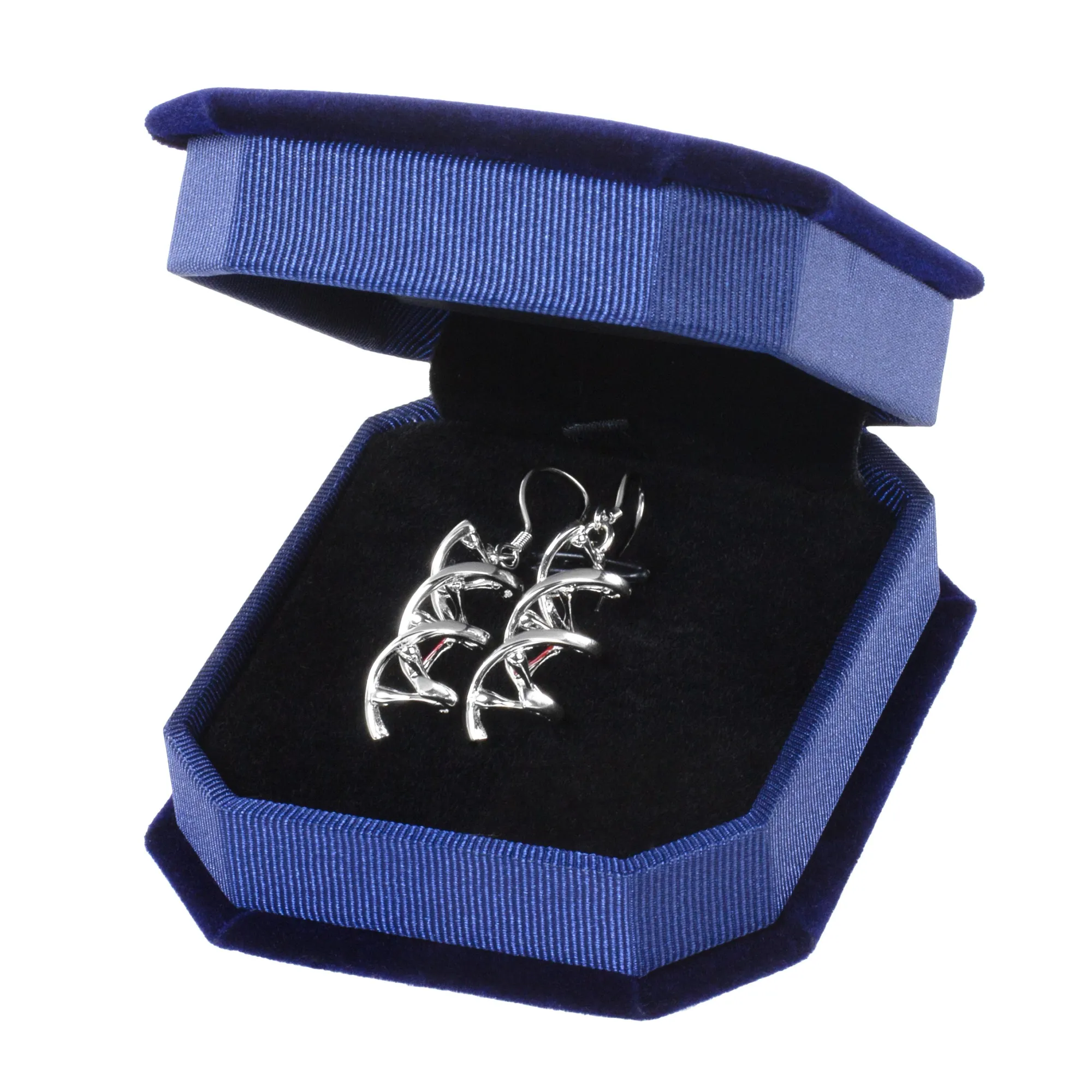 Die DNS-Ohrringe kommen zu Dir in einer kleinen Schmuckschachtel aus Samt. Perfekt zum Verschenken und sicher Aufbewahren.