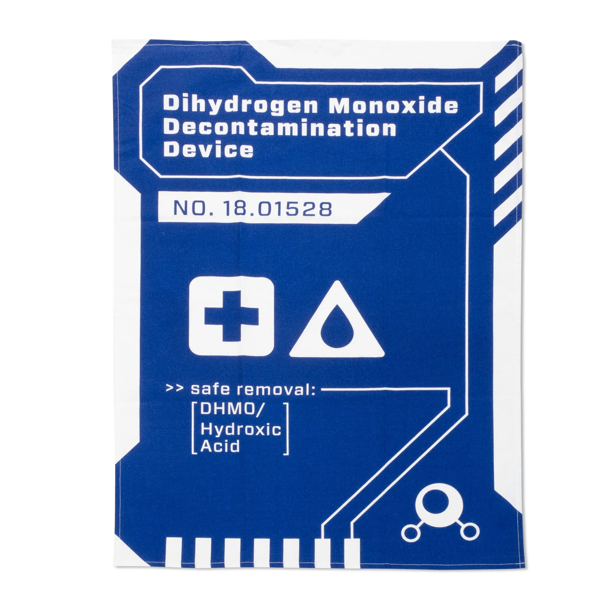 Dieses Geschirrhandtuch DHMO mit dem blauen Design trägt die englischsprachige Beschriftung „Dihydrogen Monoxide Decontamination Device“ (Dihydrogenmonoxid-Dekontaminationsgerät) und ist nicht nur für Berufschemiker geeignet, die in ihrer Freizeit gern das Gefühl haben, immer noch im Labor zu sein. Für jeden Geek wird das Abwaschen einfach etwas aufregender, wenn man das Gefühl hat, ein chemisches Experiment durchzuführen… oder zumindest danach aufzuräumen.