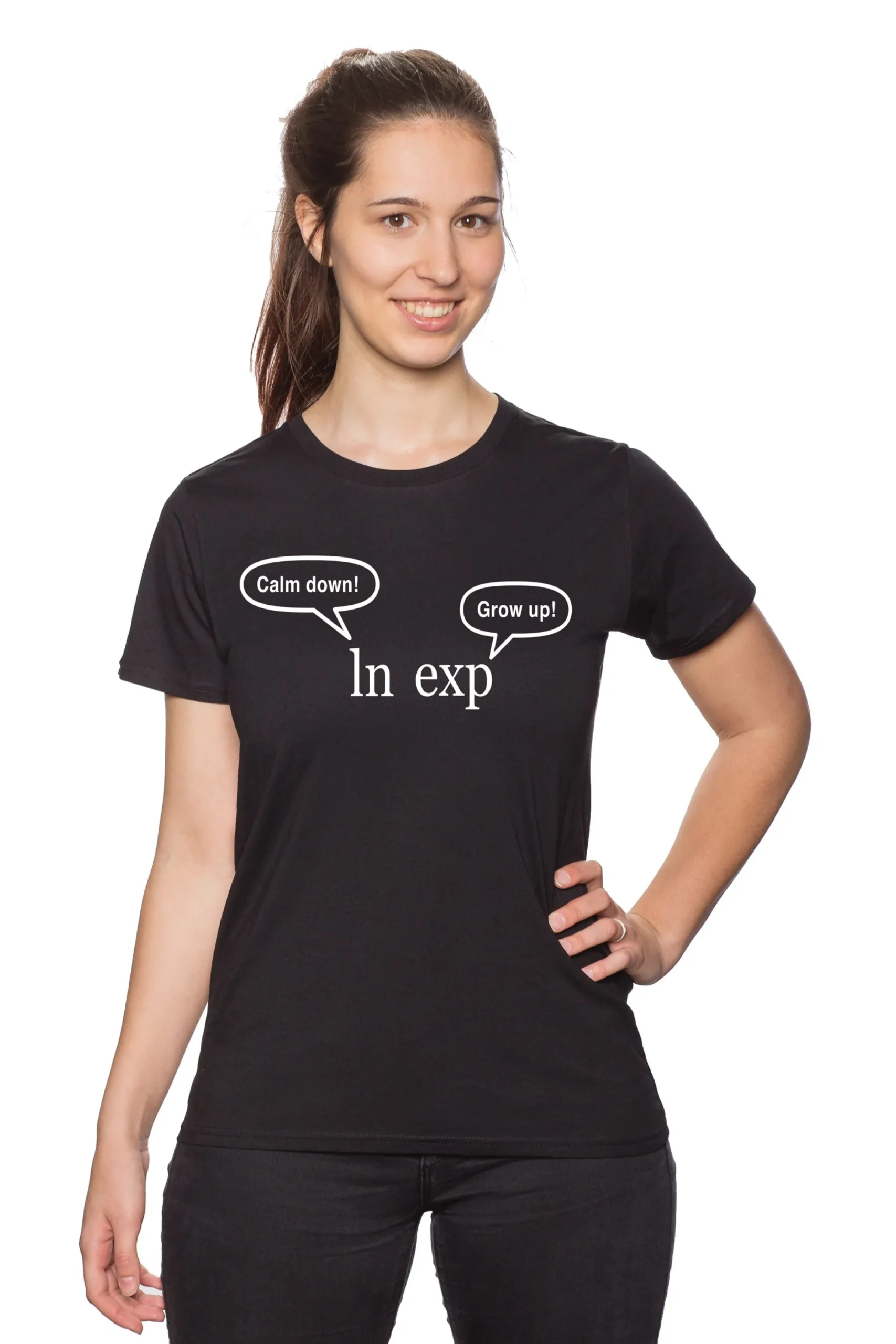Welch fiese Sprüche sich Logarithmus und Exponentialfunktion im Streit an den Kopf werfen, kannst Du auf dem Grow up Calm down Shirt sehen.