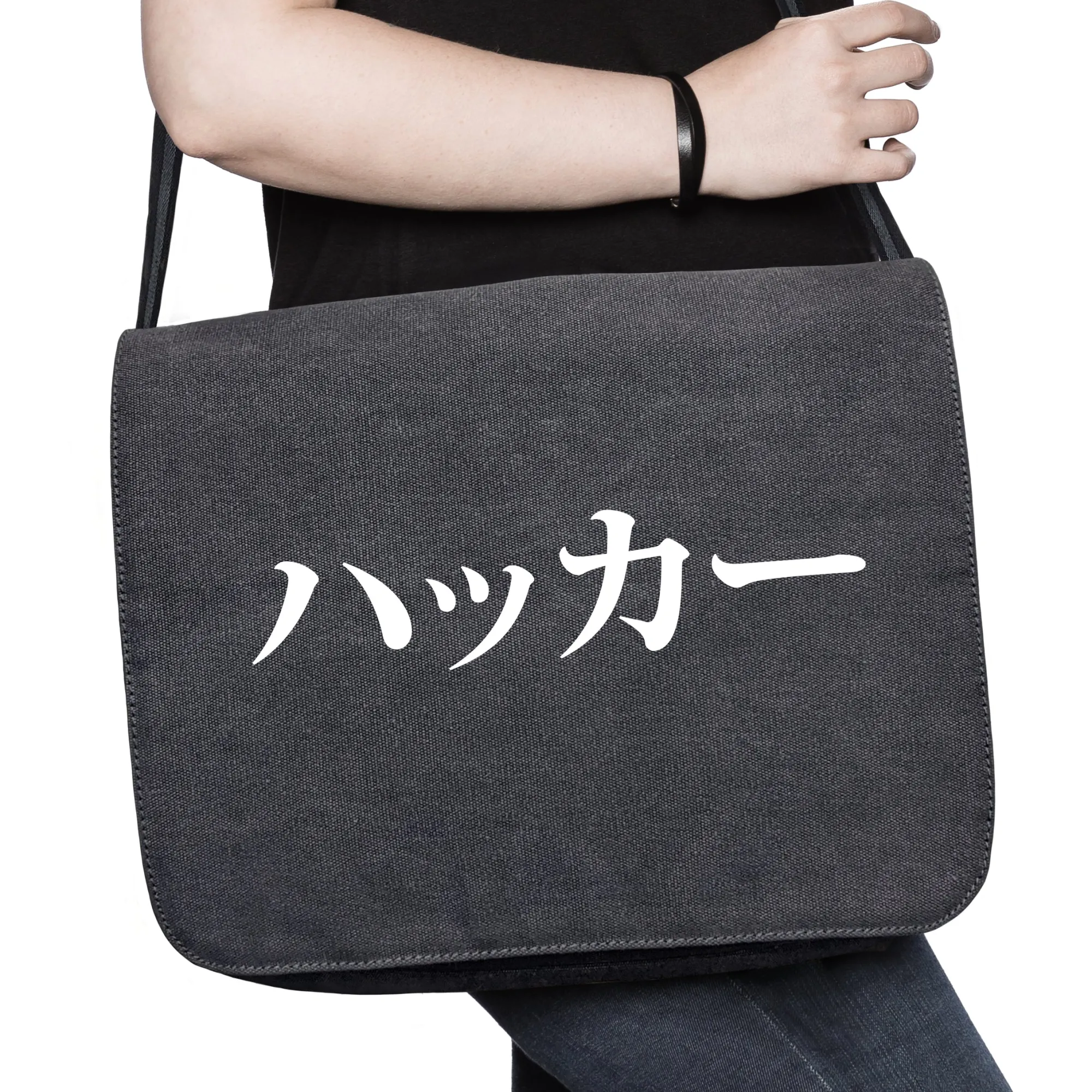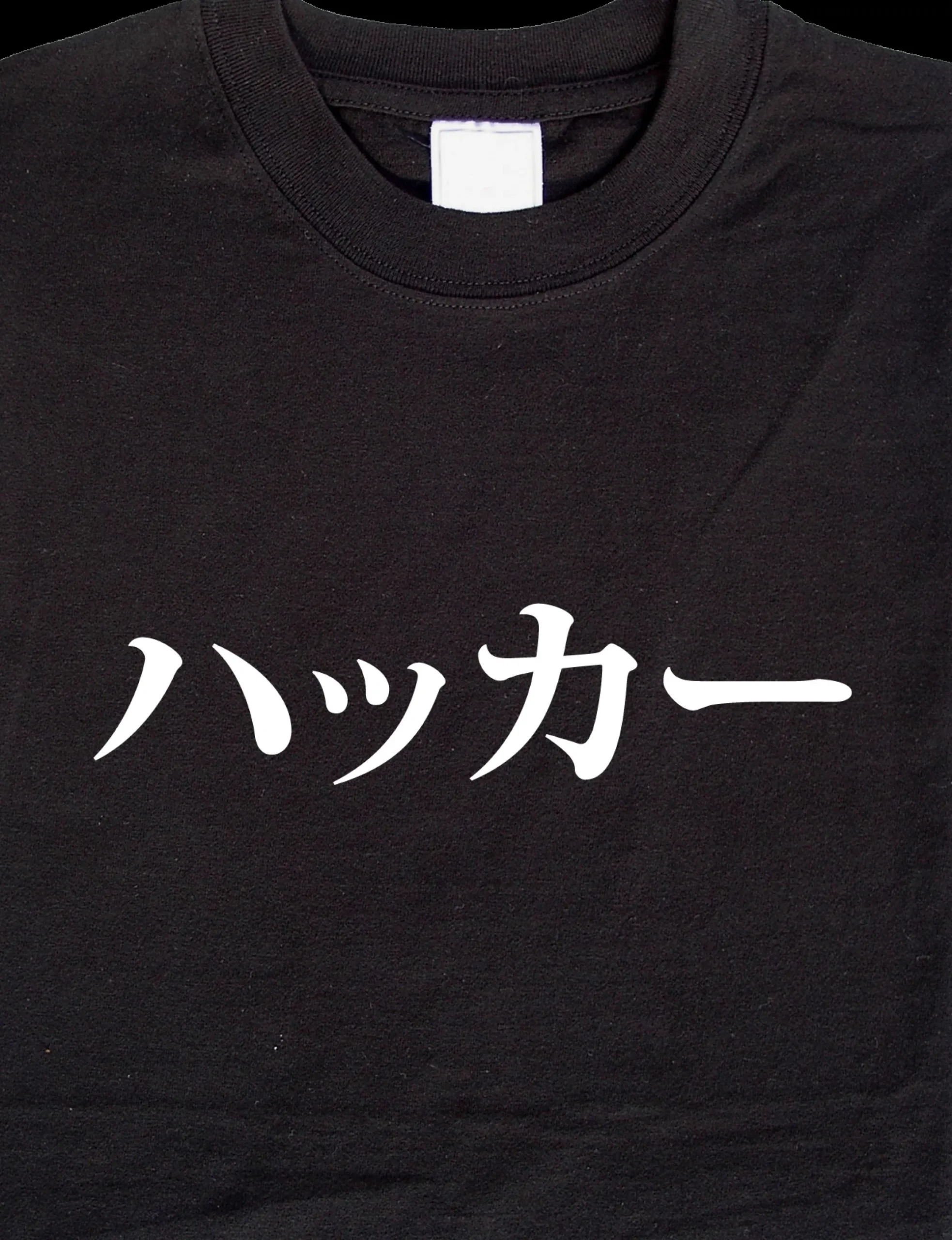 Das Wort Hacker in Japanisch auf einem Shirt. Ausgesprochen werden die Schriftzeichen „hakka“ (mit einer kleinen Pause zwischen den k, also „hak (pause) ka“).