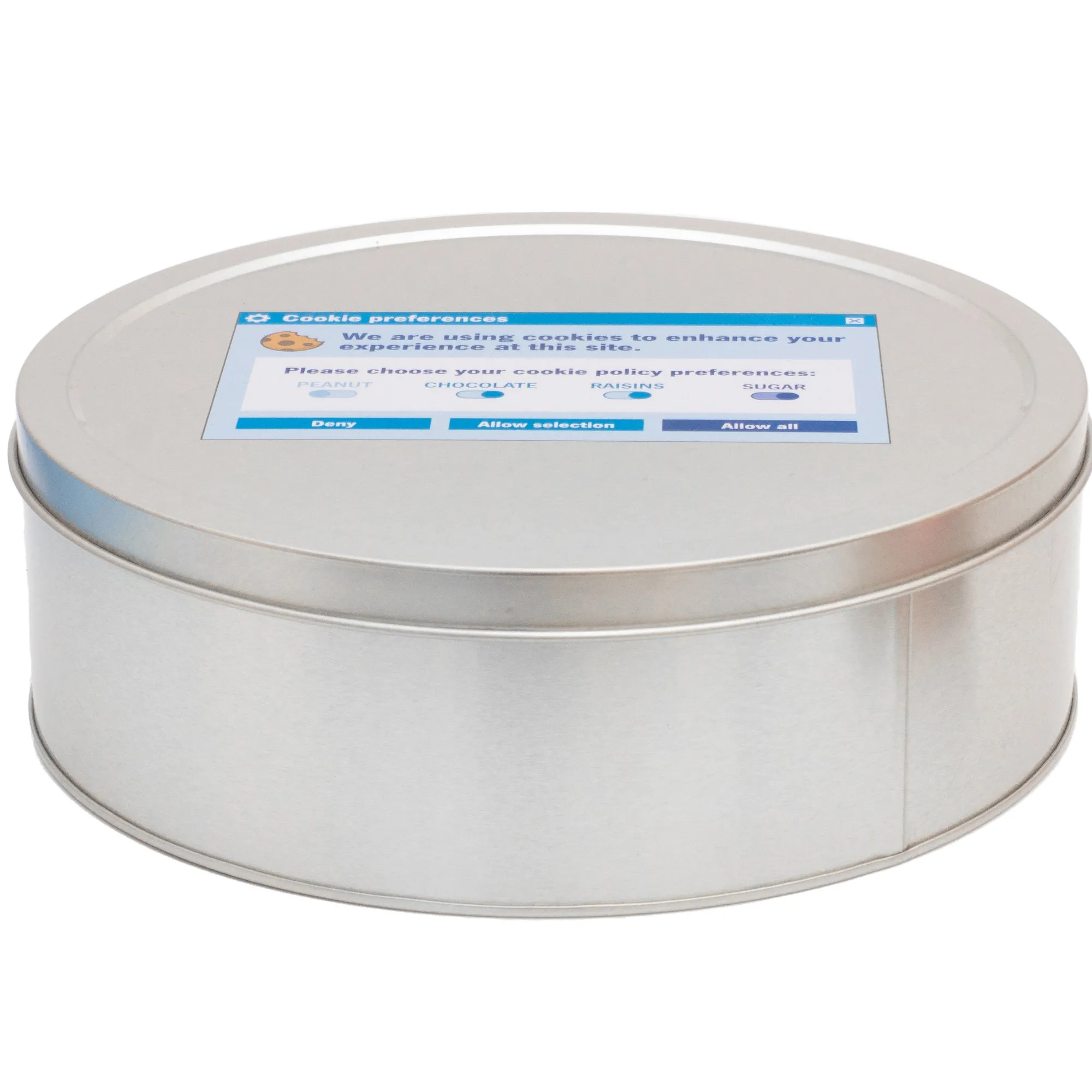- Runde Dose aus Metall mit Deckel zur Aufbewahrung von “Cookies” deiner Wahl