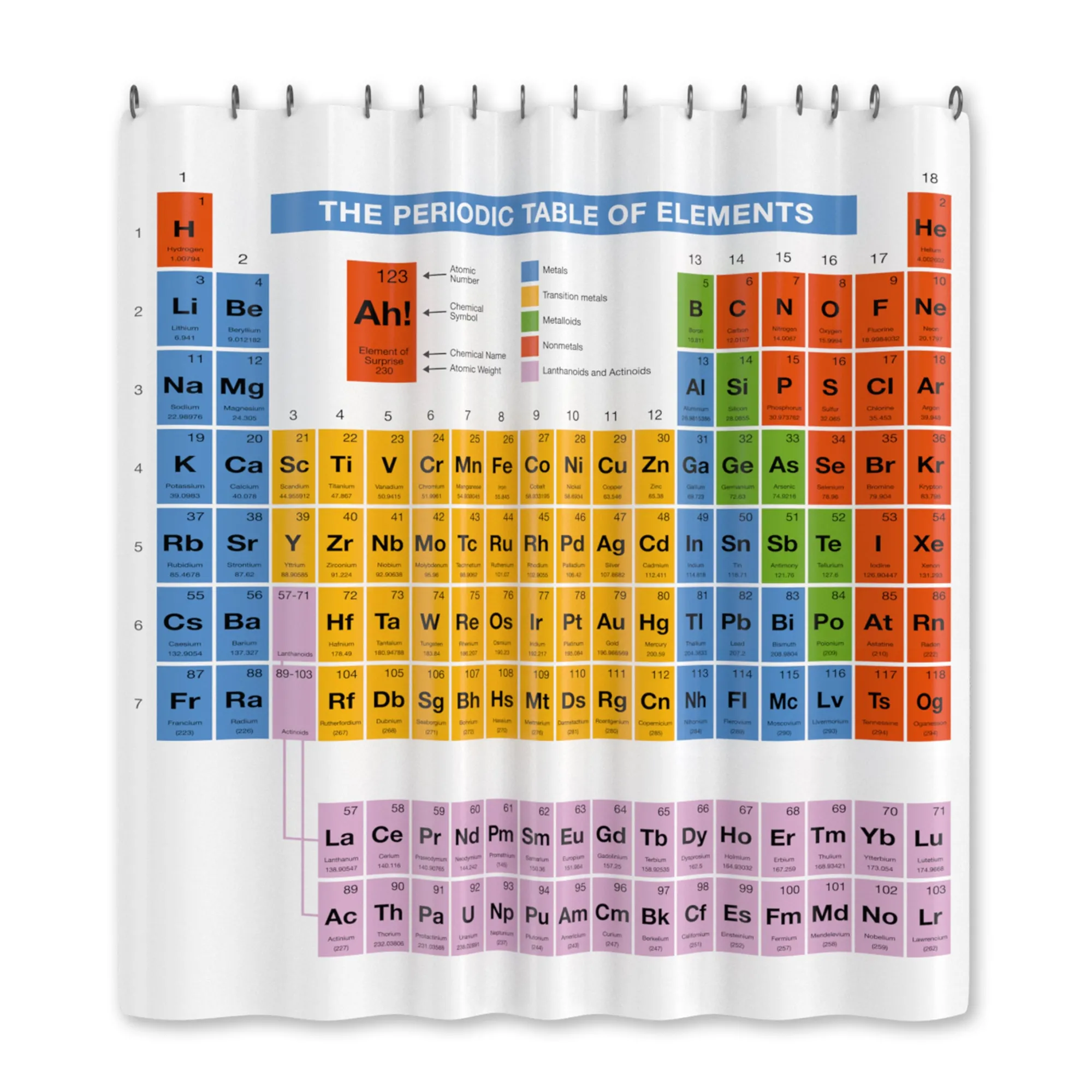 Doch das wird sich ab jetzt ändern! Der Periodensystem Duschvorhang lädt dazu ein, während der allmorgendlichen Hygienerituale für Chemie zu lernen – direkt in der Badewanne mit etwas H2O! Falls Du Dich in der Chemie schon richtig gut auskennst und vielleicht sogar Nachhilfe gibst oder dozierst, wird Dein Badezimmer mit diesem Duschvorhang ein toller Anschauungsort – warum nicht mal den Unterricht neben dem Waschbecken stattfinden lassen? Das passende PES-Badehandtuch haben wir natürlich auch im Angebot.:)
