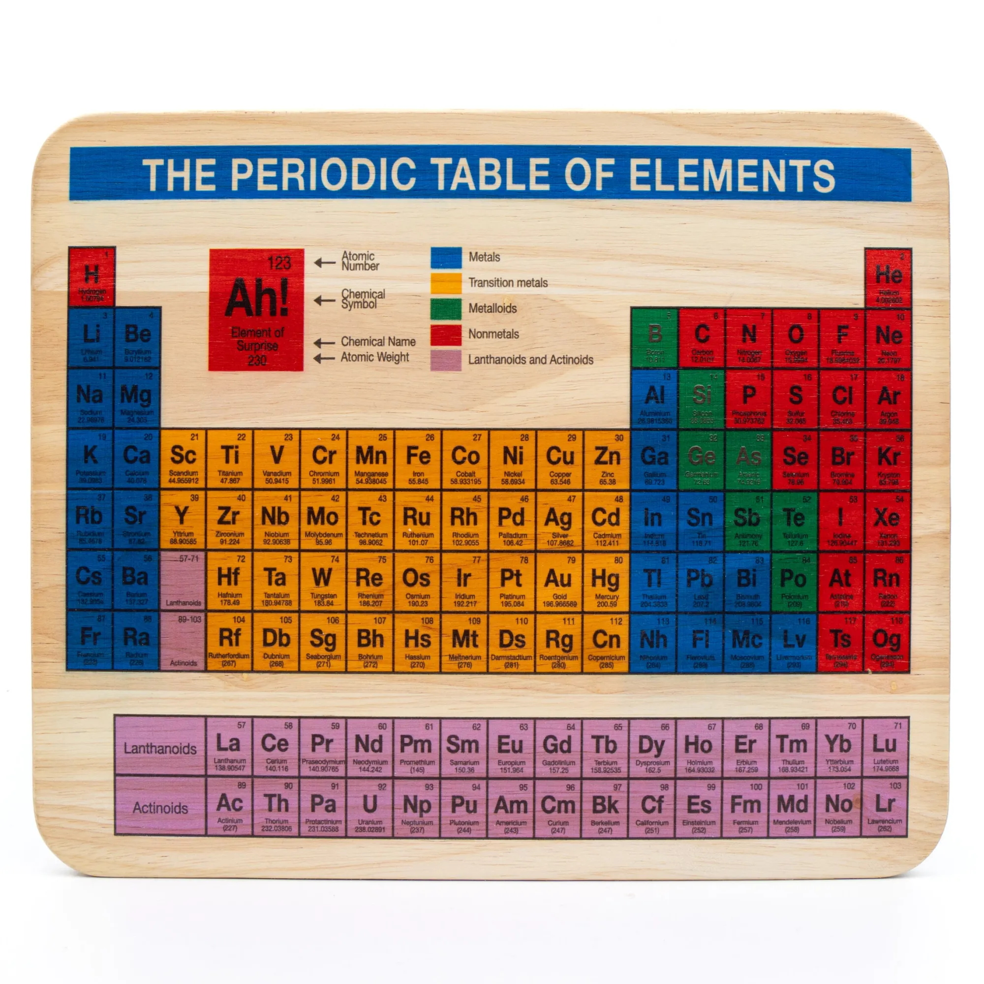 Fragen über Fragen. Zumindest einige Antworten bekommst du ab jetzt mit dem Schneidebrett Periodensystem. So hast du alle wichtigen chemische Elemente stets übersichtlich vor Augen, während du die Zutaten für dein nächstes Gericht schneidest. Alle Bestandeile eines Periodensystems sind natürlich auch auf diesem Brett abgedruckt, unter anderem die chemischen Symbole und die Ordnungszahlen.