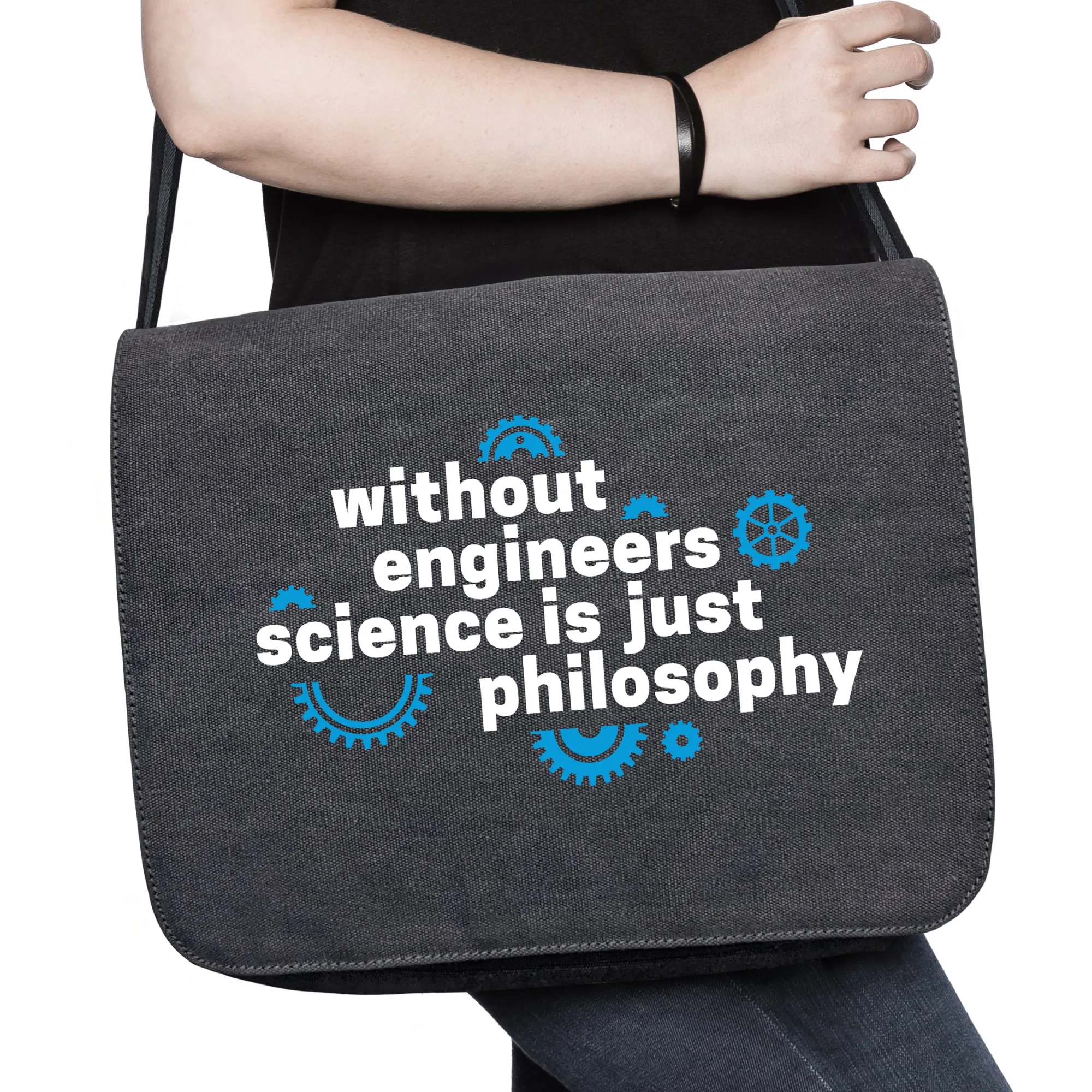 Das „Without Engineers“-T-Shirt geht sogar noch einen Schritt weiter und verkündet provokant: „[i]Without engineers, science is just philosophy[/i]“ (Engl. für: Ohne Ingenieure ist Wissenschaft auch nur Philosophie). Natürlich muss diese Aussage mit einem Korn Salz verstanden werden: Insbesondere in den Naturwissenschaften sind viele wissenschaftliche Errungenschaften erst durch das Mitwirken von Ingenieuren möglich geworden. Es ist also verständlich, dass diese Zunft deshalb in einem besonderen Licht gesehen wird. Dass dies nicht gilt, sobald wir den Positivismus hinter uns lassen, sollte jedermann klar sein. 😉