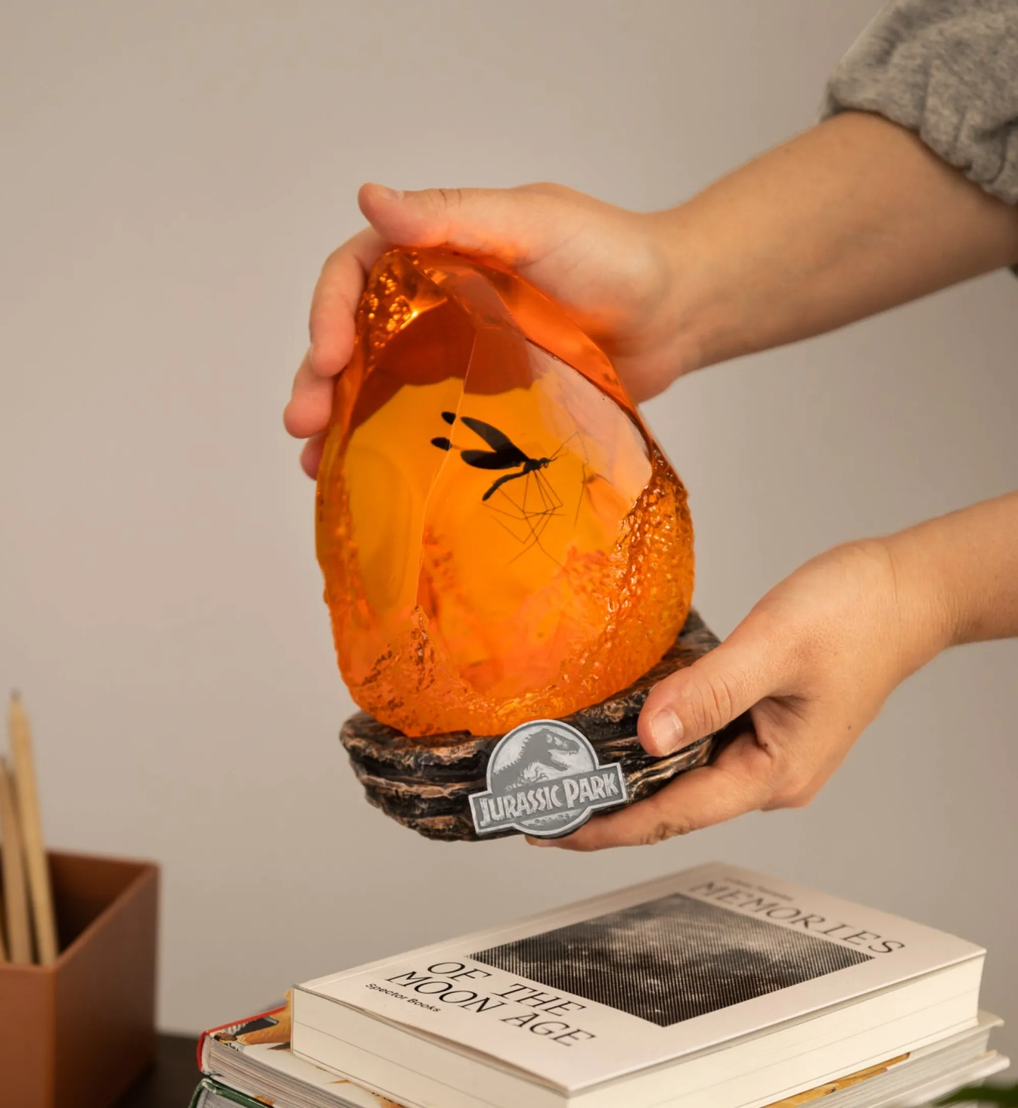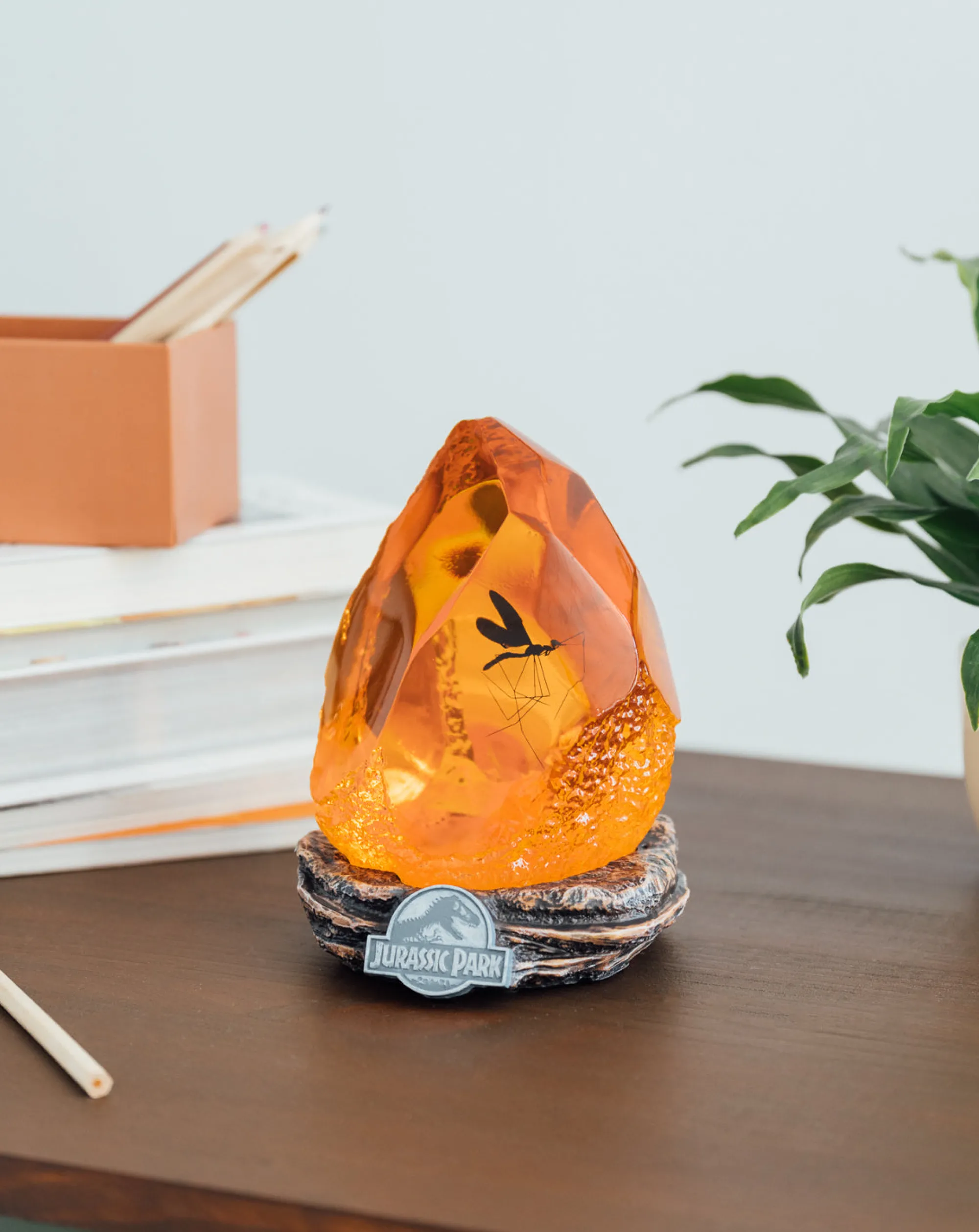 „Das Leben findet einen Weg.“ Dieses Zitat kommt dir bekannt vor? Dann wird die Jurassic Park Lampe: Bernstein mit Mosquito ganz sicher schon bald den Weg zu dir nach Hause finden. Die Lampe kommt in der Form eines großen Bernsteins daher, der auf einem steinern wirkenden Sockel steht. Im Inneren der Lampe befindet sich ein Mosquito, der so wirkt wie die stechenden Plagegeister, die vor vielen Millionen Jahren einen Dinosaurier gestochen haben könnten.