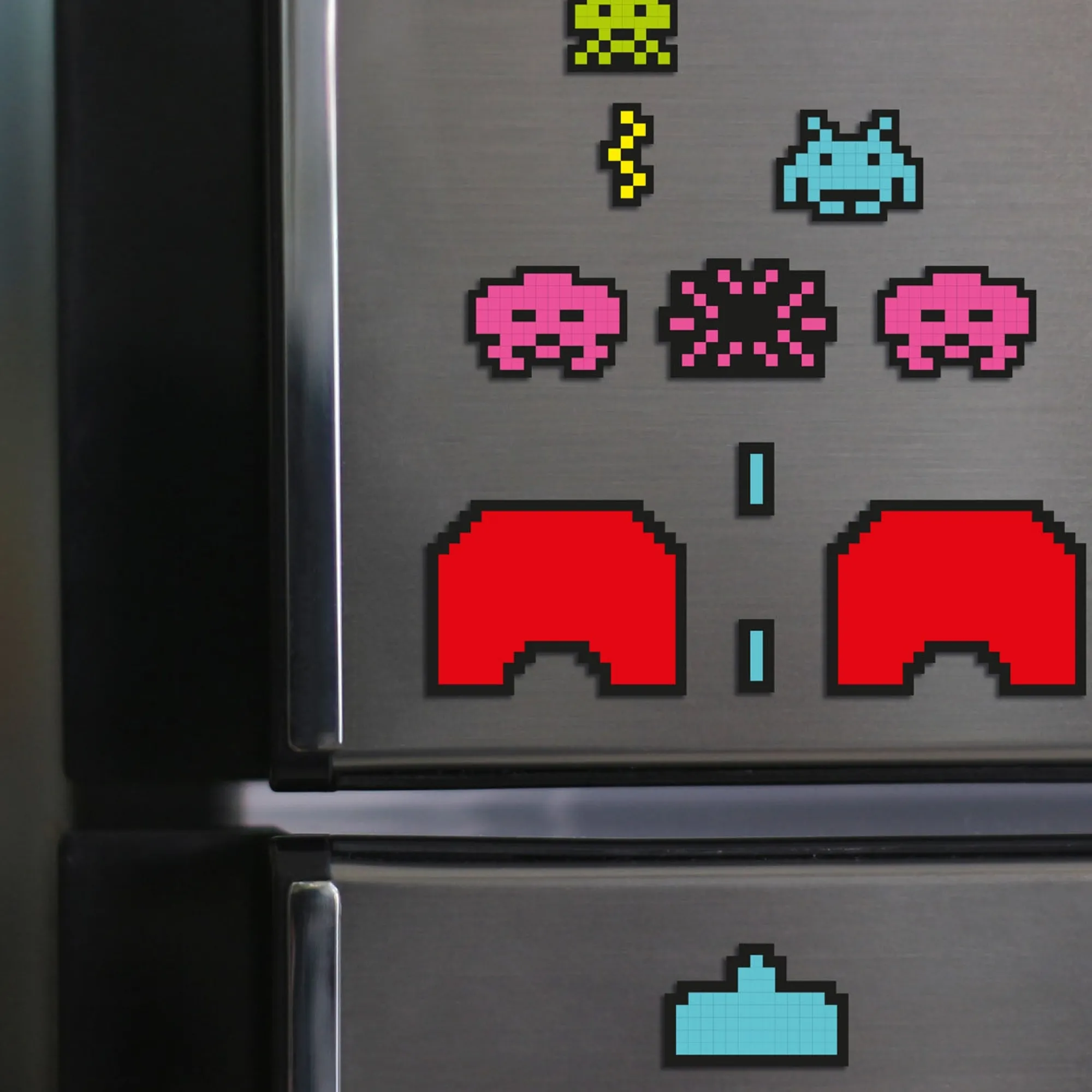 Erstelle deine eigenen Space Invader Level direkt auf deinem Kühlschrank! Perfekt für alle Retro Gamer, Nostalgiker oder einfach alle die einen Faible für nerdige Deko haben.