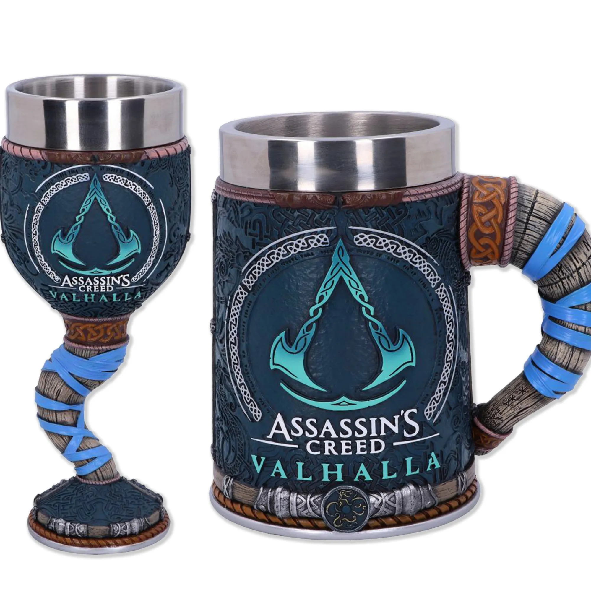- Trinkgefäße, deren Design auf dem Spiel „Assassin’s Creed: Valhalla“ basiert