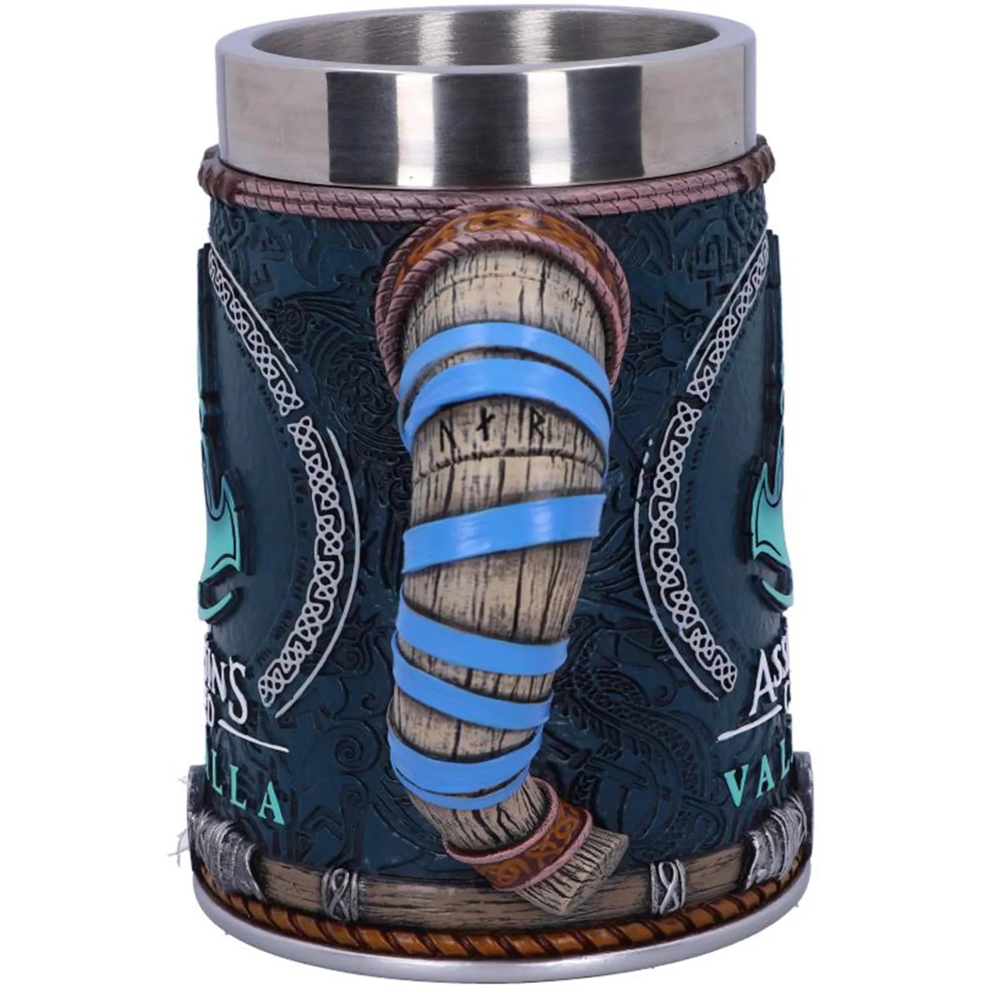 Belohne dich nach stundenlangen Quests im Wikinger-Universum von AC: Valhalla mit etwas Wein, Bier, Met oder auch Saft aus diesen offiziell lizenzierten Assassin’s Creed Valhalla Trinkgefäßen. Zur Auswahl stehen ein Weinkelch mit gebogenem Stiel und ein Bierkrug. Beide Trinkgefäße sind extrem detailliert gearbeitet: Von der Hornoptik des Stiels bzw. Henkels mit blauem Lederband, über die verschiedensten nordischen Runen, bis zum hell hervortretenden AC Valhalla-Logo erinnert alles an das Spiel, dessen atemberaubende Grafik genau so zur Questerfüllung wie zu Landschaftsspaziergängen anregt.