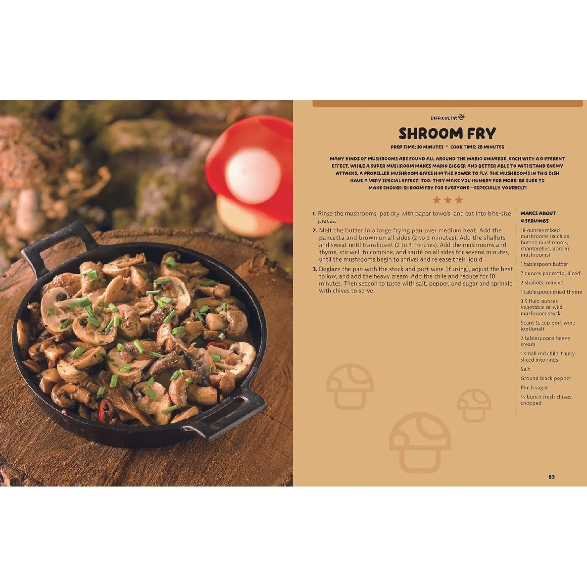 Von „Super Mushrooms“ über „Magma Burgers“ bis zum legendären „Mistake“ – die Gerichte klingen nicht nur nach Videospiel-Abenteuer, sie lassen sich mit alltäglichen Zutaten und einfachen Anleitungen auch ganz real umsetzen. Jede Doppelseite bringt nicht nur Farbe auf den Tisch, sondern auch Spaß in den Kochprozess: Vollfarbige Abbildungen, praktische Tipps und charmante Fakten rund um Mario, Luigi, Peach und Co. machen das Buch zur perfekten Mischung aus Kochhilfe und Nerd-Lektüre.