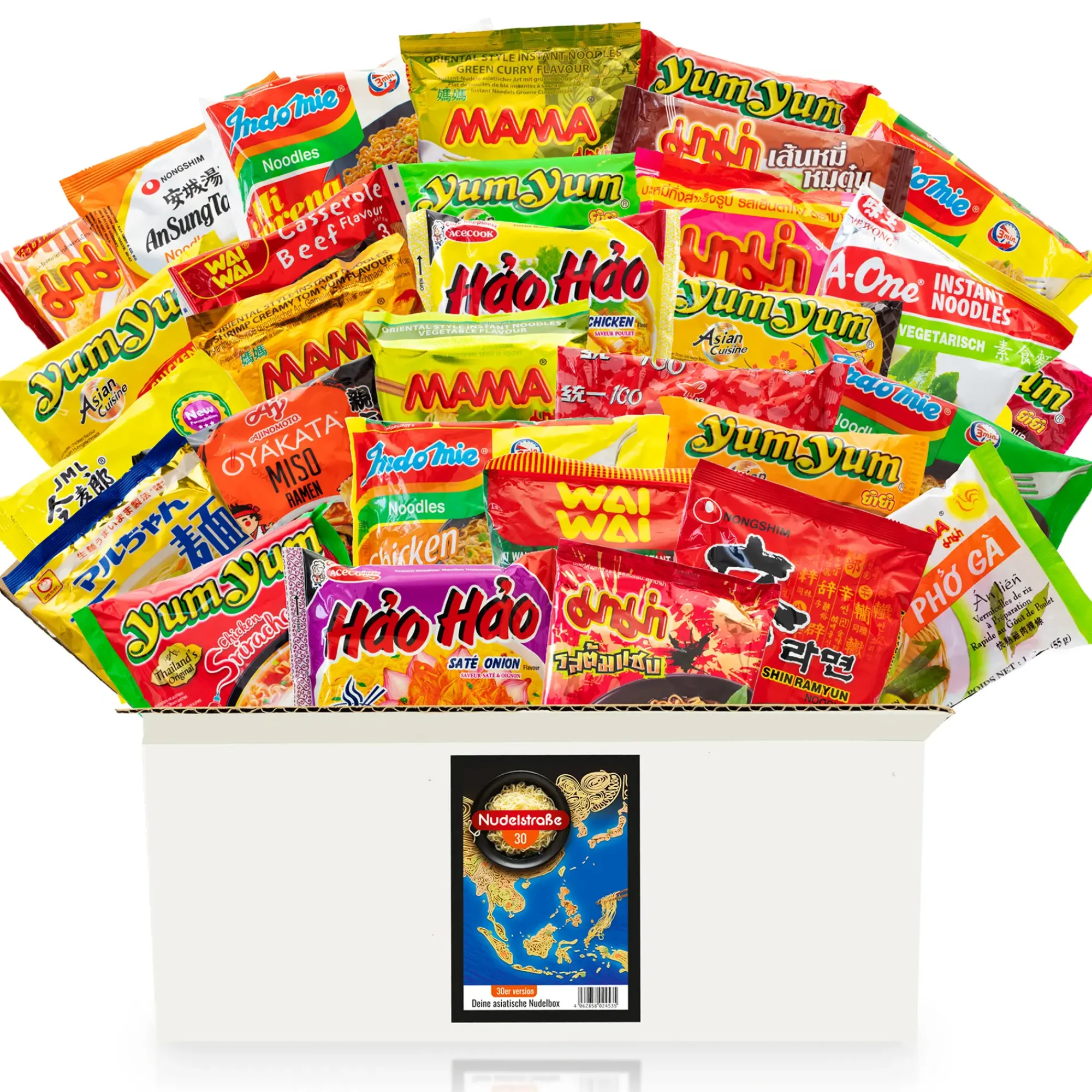 - Nudelbox mit 12 oder 30 ausgewählten Sorten Instant-Nudeln aus Japan, Korea, Thailand, Vietnam und Indonesien